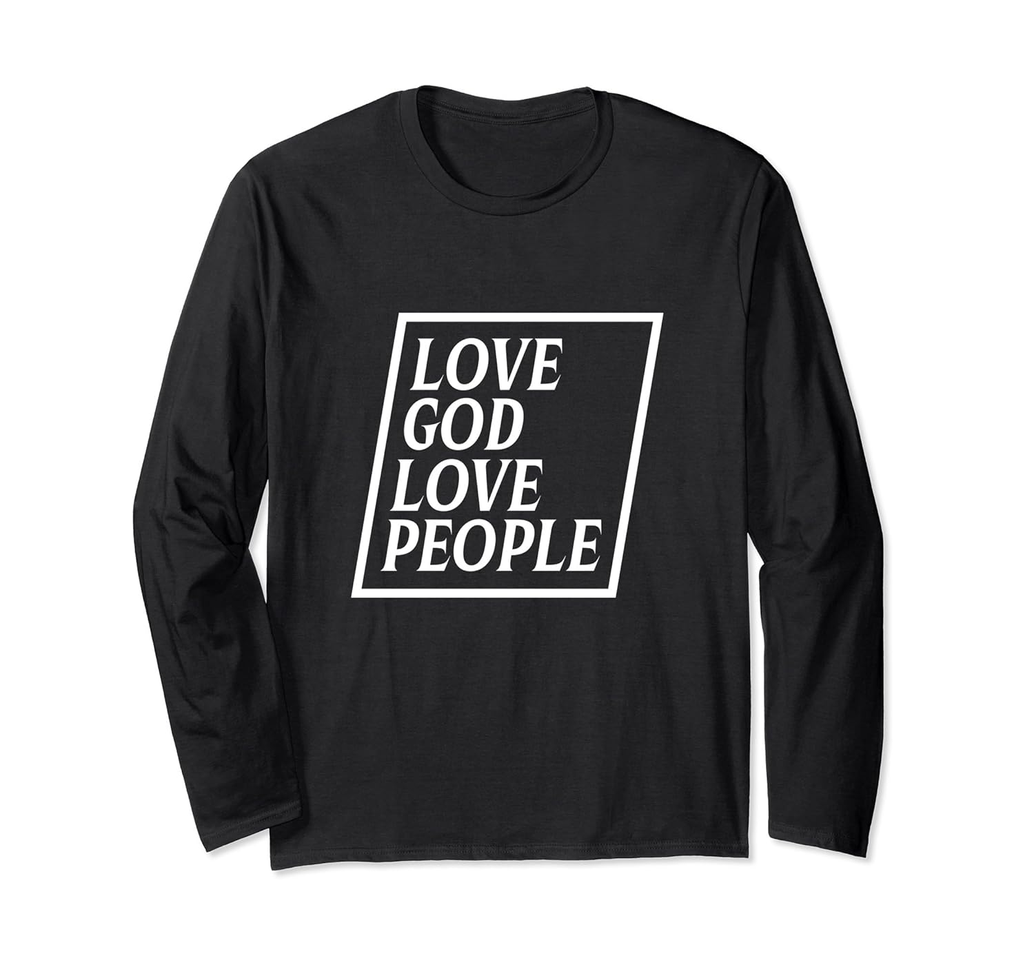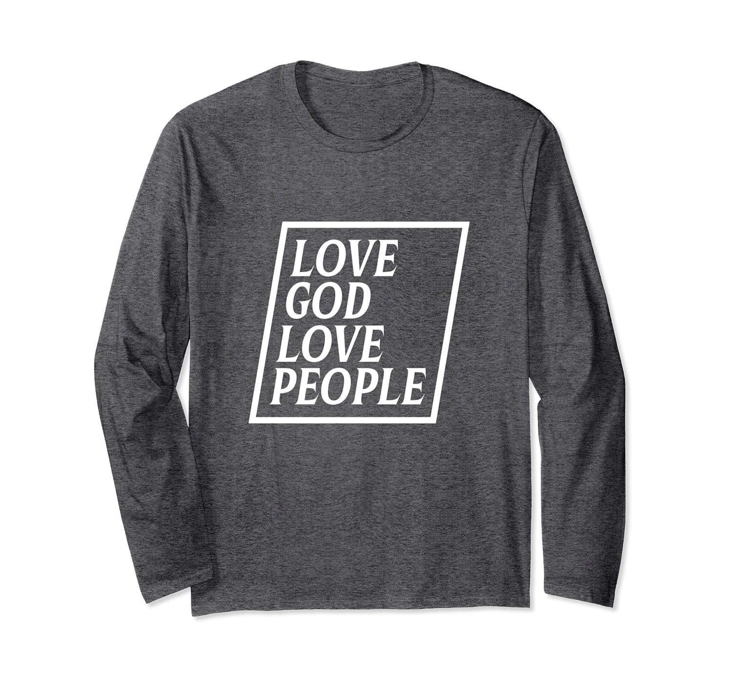 Solid colors: 100% Cotton; Heather Grey: 90% Cotton, 10% Polyester; All Other Heathers: 50% Cotton, 50% Polyester; Imported; Machine wash cold with like colors, dry low heat; Our Love God Love People long sleeve its great for Christians.; The perfect gift long sleeve shirt anyone that love Jesus and spread the message of Love. Its a great gift idea; Lightweight, Classic fit, Double-needle sleeve and bottom hem