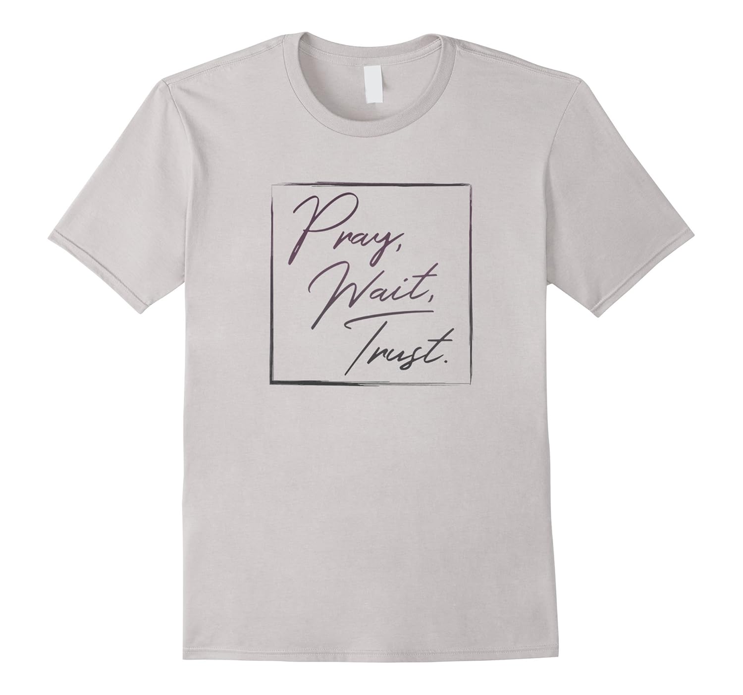 Solid colors: 100% Cotton; Heather Grey: 90% Cotton, 10% Polyester; All Other Heathers: 65% Cotton, 35% Polyester, Imported, Machine wash cold with like colors, dry low heat, Pray, Wait, Trust. Do you Love God. Does God Love you. Of course he does! A beautifully designed Christian Shirt! Are you a godly christian. Are you feeling blessed. Do you want to pray more and worry less. Do you love Jesus. Do you love the bible. Perfect for Christ followers, those who are believers and those who love the bible, God and Jesus! This is a great Catholic shirt, denominational christian shirt for everyone, Lightweight, Classic fit, Double-needle sleeve and bottom hem