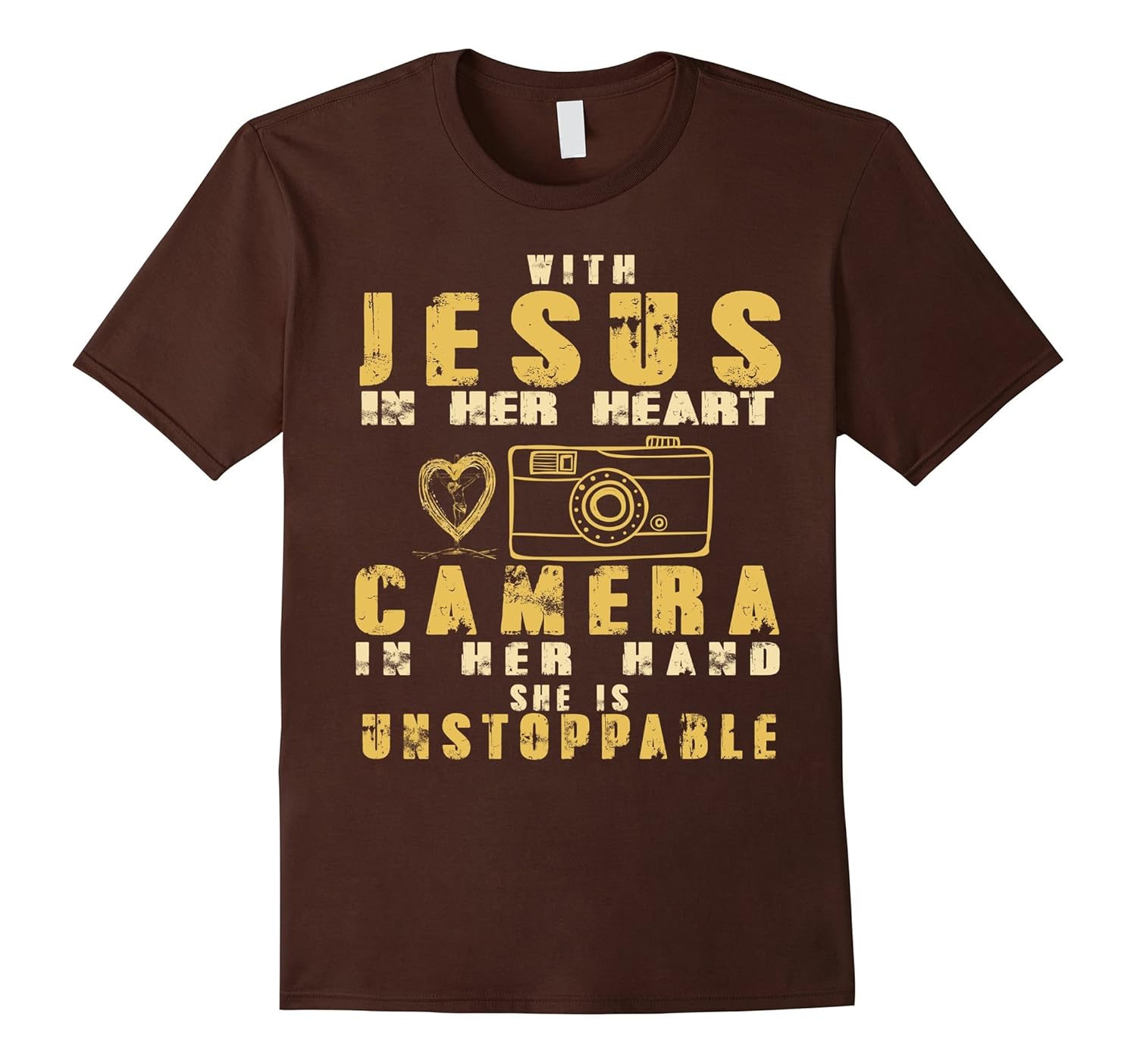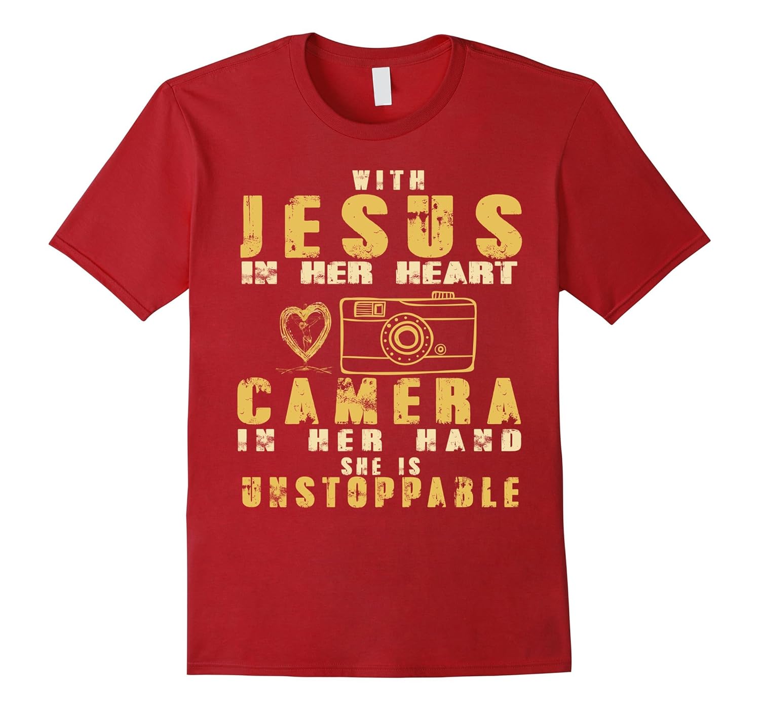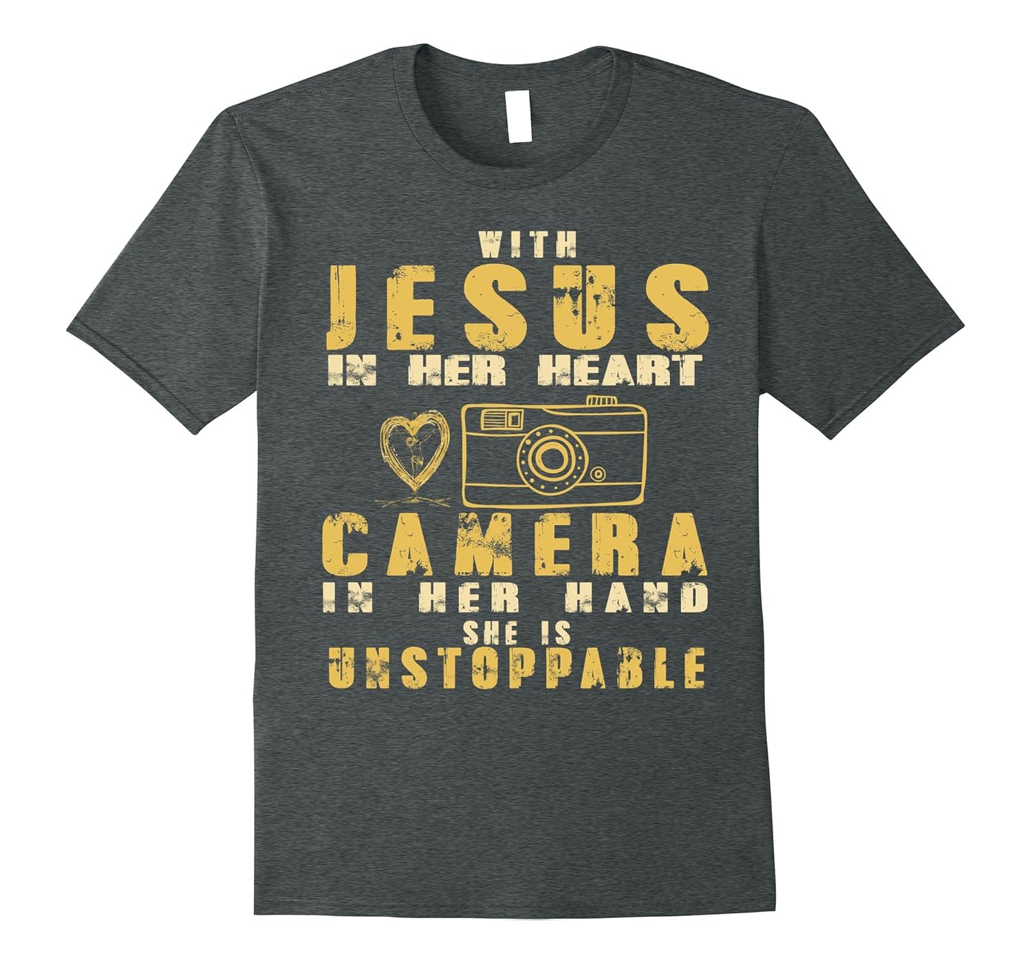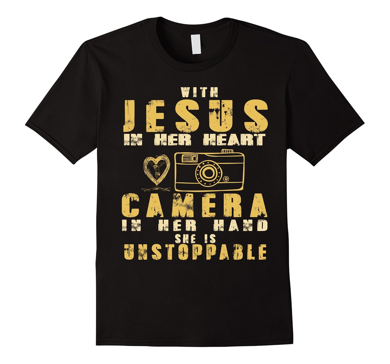 Solid colors: 100% Cotton; Heather Grey: 90% Cotton, 10% Polyester; All Other Heathers: 65% Cotton, 35% Polyester, Imported, Machine wash cold with like colors, dry low heat, With Jesus In Her Heart And Camera In Her Hand She Is Unstopable T-shirt, This is a great gift on special day: christmas day, birthday, thanks giving… Lightweight, Classic fit, Double-needle sleeve and bottom hem