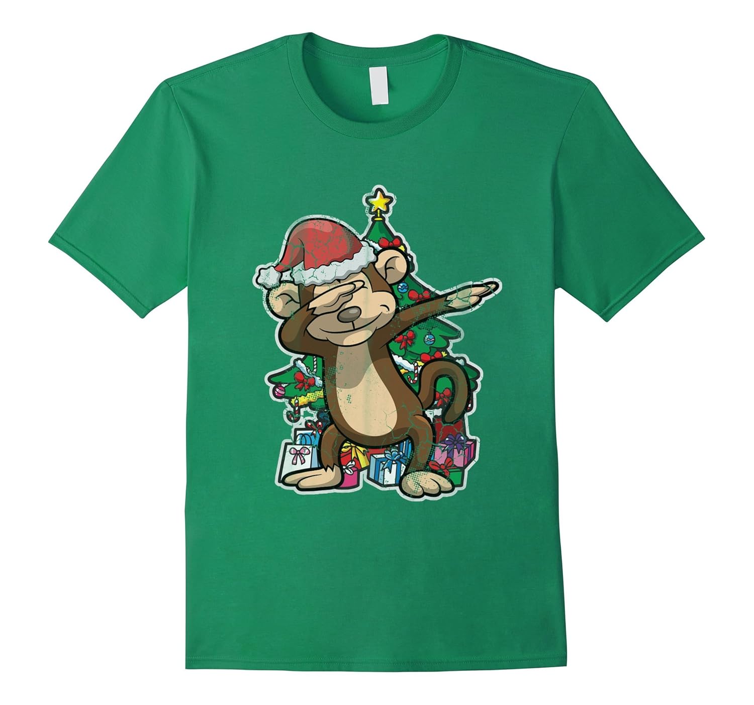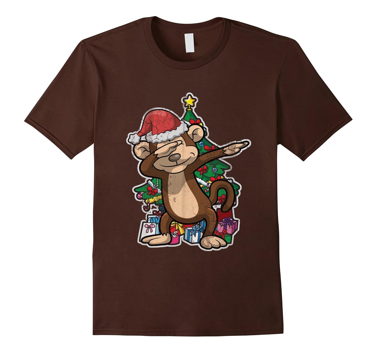 Solid colors: 100% Cotton; Heather Grey: 90% Cotton, 10% Polyester; All Other Heathers: 65% Cotton, 35% Polyester; Imported; Machine wash cold with like colors, dry low heat; Merry Christmas Dabbing Around The Tree Monkey Shirts for men,women,boys,girls and kids.; Funny animals,holiday humor t shirts and apparel dab gifts.; Lightweight, Classic fit, Double-needle sleeve and bottom hem