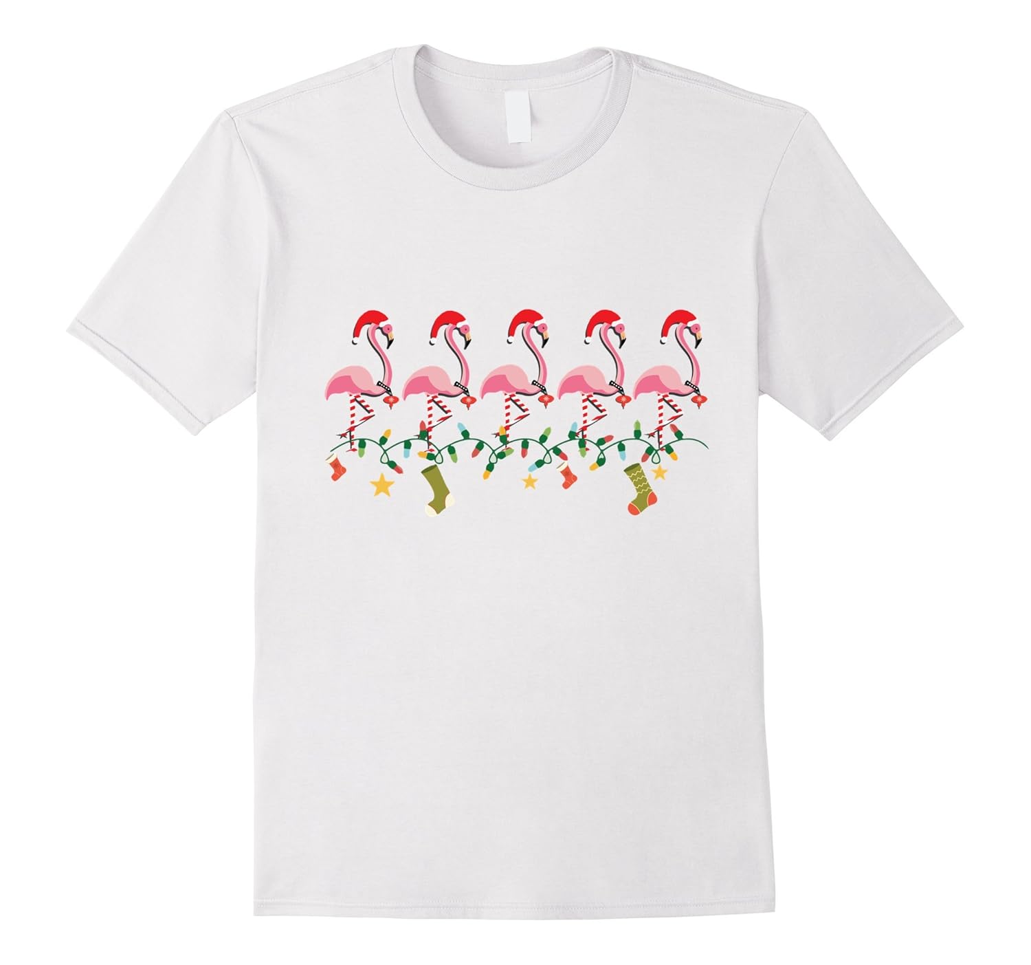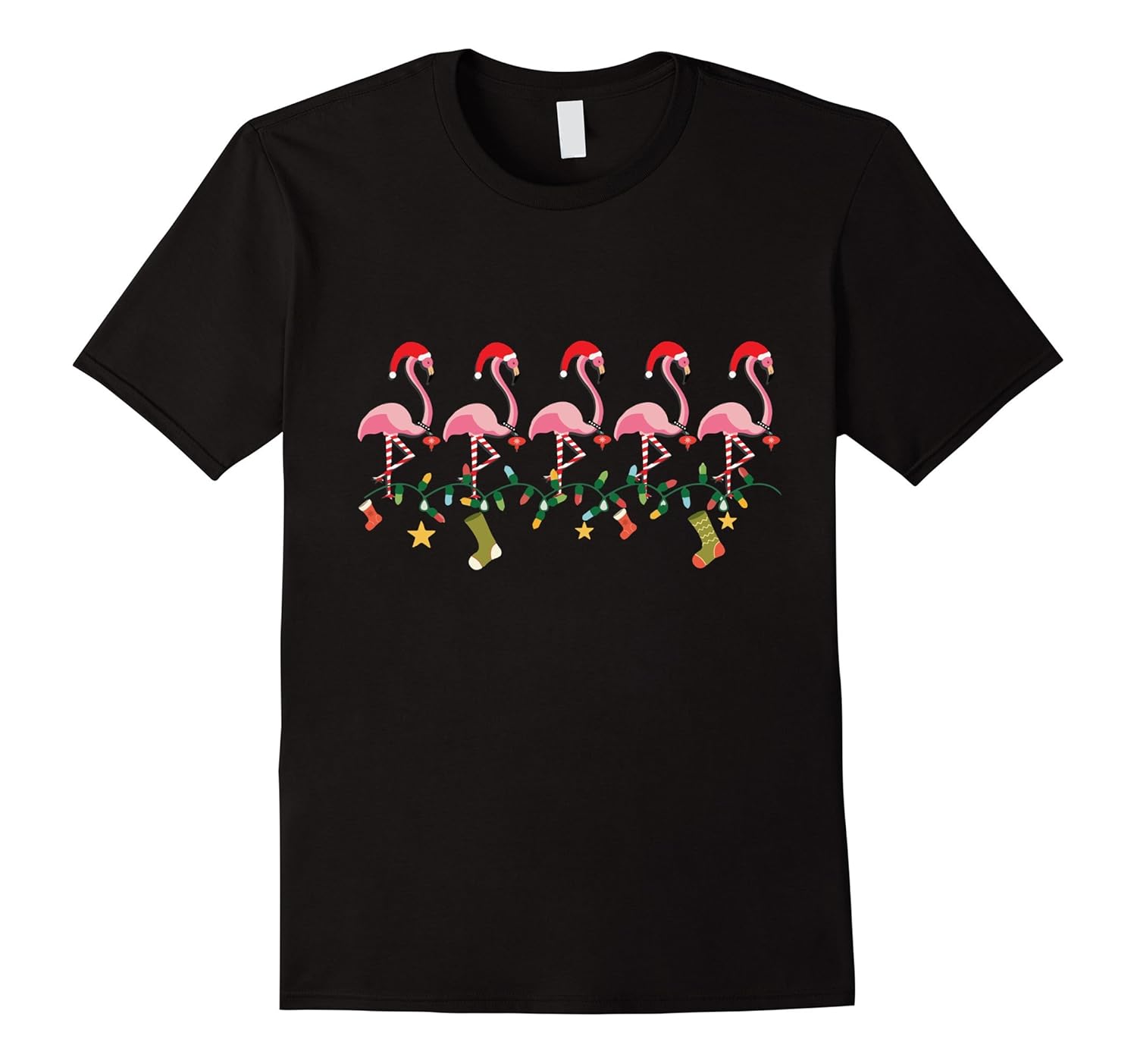 Christmas Flamingo Santa T shirt Colorful Lights Bulbs-ANZ