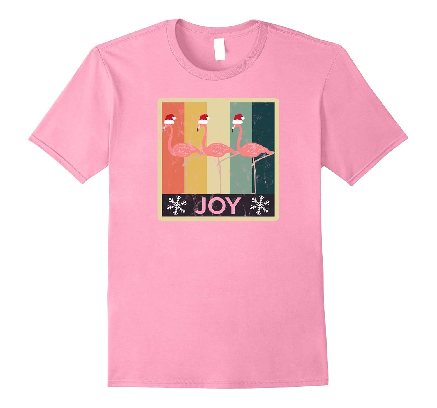 Christmas Pink Flamingos Joy Distressed Design T-Shirt-ANZ