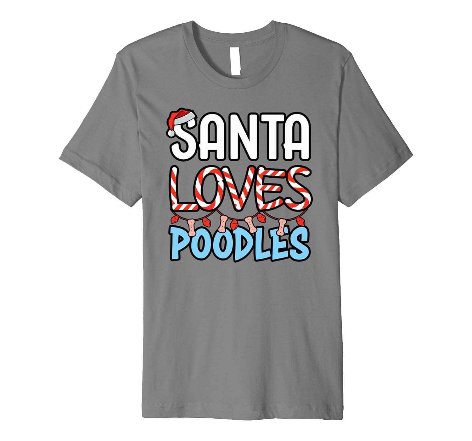 Solid colors: 100% Cotton; Heather Grey: 90% Cotton, 10% Polyester; All Other Heathers: 58% Cotton, 42% Polyester; Imported; Machine wash cold with like colors, dry low heat; This Christmas Poodle Dog T-Shirt Gifts tee comes in a variety of colors and styles for men, women, and kids and makes a great Christmas gift.; Fit: Slim (consider ordering a larger size for a looser fit); This Premium Santa Loves Poodles shirt is the perfect t-shirt for Dog owners to express that love – while skipping that ugly x-mas sweater.; This premium t-shirt is made of lightweight fine jersey fabric