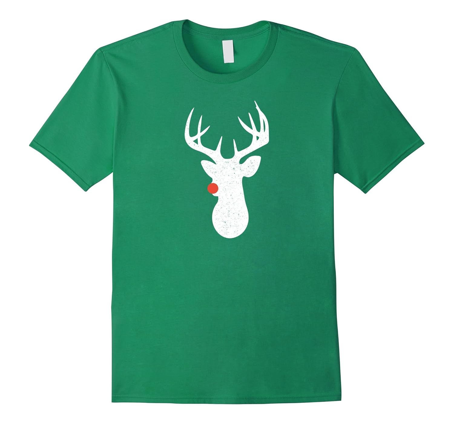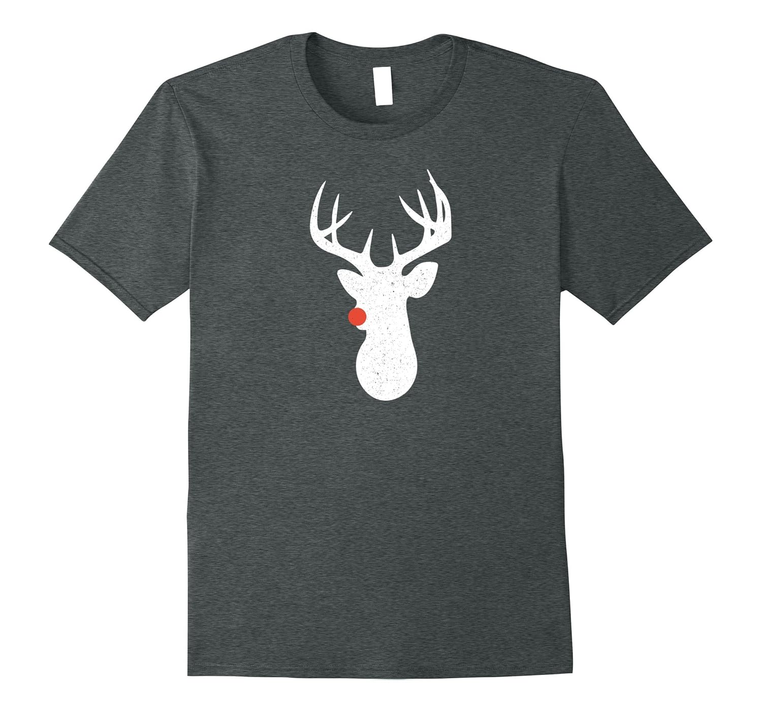 Solid colors: 100% Cotton; Heather Grey: 90% Cotton, 10% Polyester; All Other Heathers: 65% Cotton, 35% Polyester; Imported; Machine wash cold with like colors, dry low heat; Perfect for a Christmas holiday gift, Black Friday, shopping, birthday and more. Great for family photos, sleep shirt, PJs or pajama shirt.; Vintage, distressed t-shirt features the silhouette of a reindeer with a red nose. For looser fit, order one size larger.; Lightweight, Classic fit, Double-needle sleeve and bottom hem