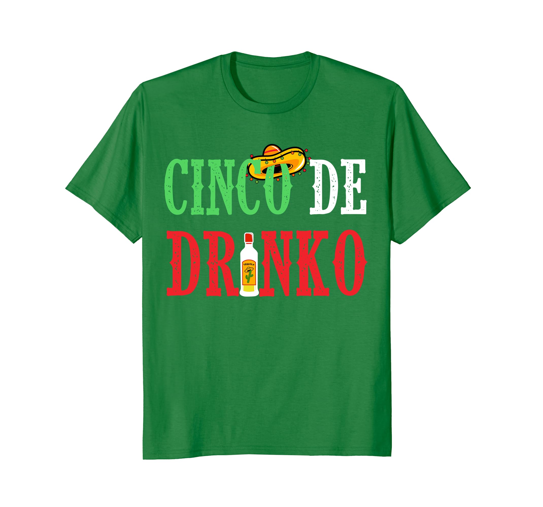 Solid colors: 100% Cotton; Heather Grey: 90% Cotton, 10% Polyester; All Other Heathers: 50% Cotton, 50% Polyester; Imported; Machine wash cold with like colors, dry low heat; Cinco De Drinko T-Shirt – Perfect holiday gift idea for men / women who celebrate Cinco De Mayo May 5th 2018 parade! Make your (dad, father, mom, mother, brother, sister, husband, bro, grandpa, buddy, wife, friends, family) happy with T-Shirt!; Cinco De Drinko Tee Shirt – Complete your gift with clothing (hat, tank top, decorations, v neck, socks, hoodie, long sleeve, sweatshirt, boxers, apparel, crop top, apron), coffee / beer mug or glass and cup, keychain on every Fathers day party!; Lightweight, Classic fit, Double-needle sleeve and bottom hem