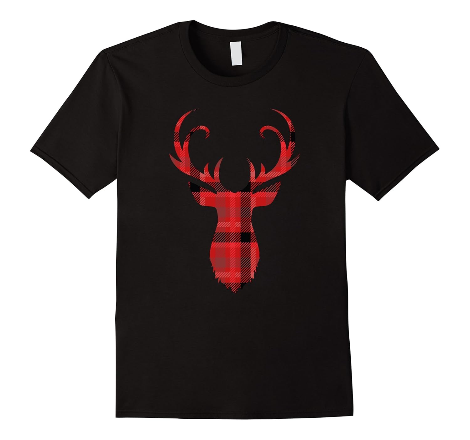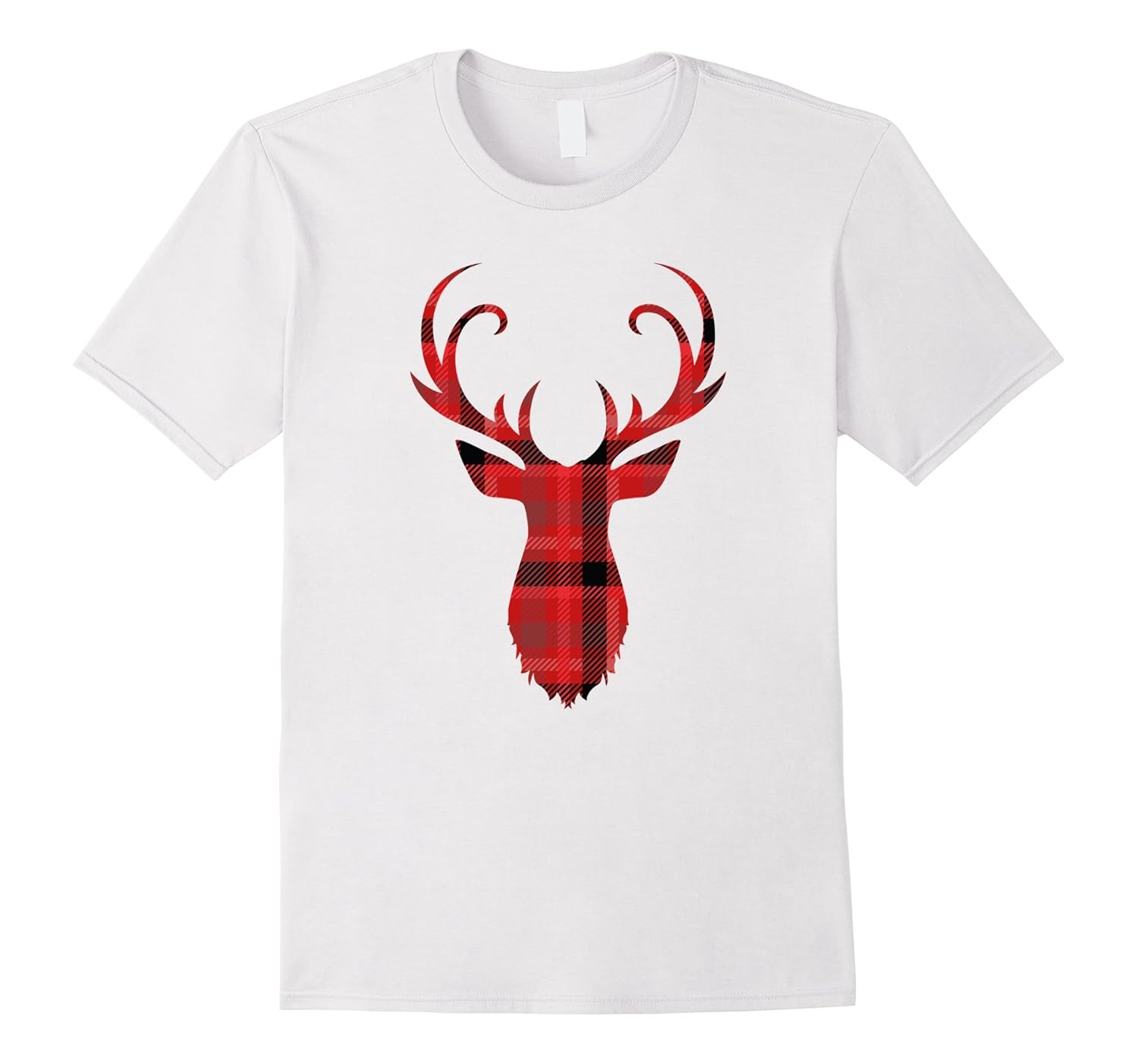 Solid colors: 100% Cotton; Heather Grey: 90% Cotton, 10% Polyester; All Other Heathers: 65% Cotton, 35% Polyester; Imported; Machine wash cold with like colors, dry low heat; Silhouette of a whitetail buck deer. Red and black stands out for the Christmas colors. Oh my deer plaid flannel reindeer cutout stag shape head on a t-shirt. Great gift that is Xmas colored but not so much that it isnt fashionable the rest of the year.; Perfect gift for any man, woman, girl, boy, child, kid, teen, youth, or young adult who loves Scottish Patterns, Deer, tartan tees, snowy winter, Christmastime, gifts, Xmas trees, and December 25th! Also great for deer hunting and camping season.; Lightweight, Classic fit, Double-needle sleeve and bottom hem