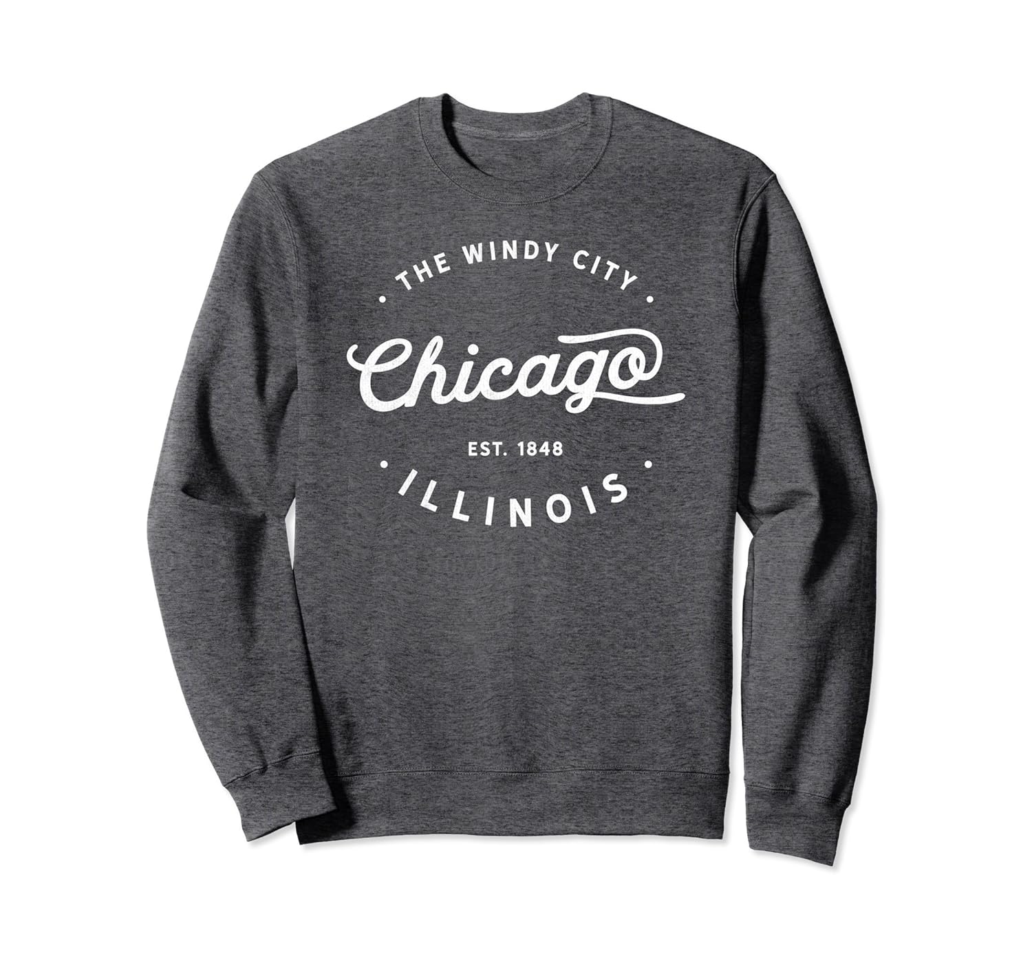 Solid colors: 80% Cotton, 20% Polyester; Heather Grey: 78% Cotton, 22% Poly; Dark Heather: 50% Cotton, 50% Polyester; Imported; Machine wash cold with like colors, dry low heat; Our Classic Vintage Retro Chicago Illinois Windy City warm and comfortable sweatshirt apparel is for anyone proud and calls themselves Chicago resident or visitor, an amazing place to live and go vacation and relax.; Buy this trendy novelty graphic apparel now as a great birthday gift, fathers day, mothers day, husband, wife, son, daughter, boyfriend, girlfriend and children.; 8.5 oz, Classic fit, Twill-taped neck