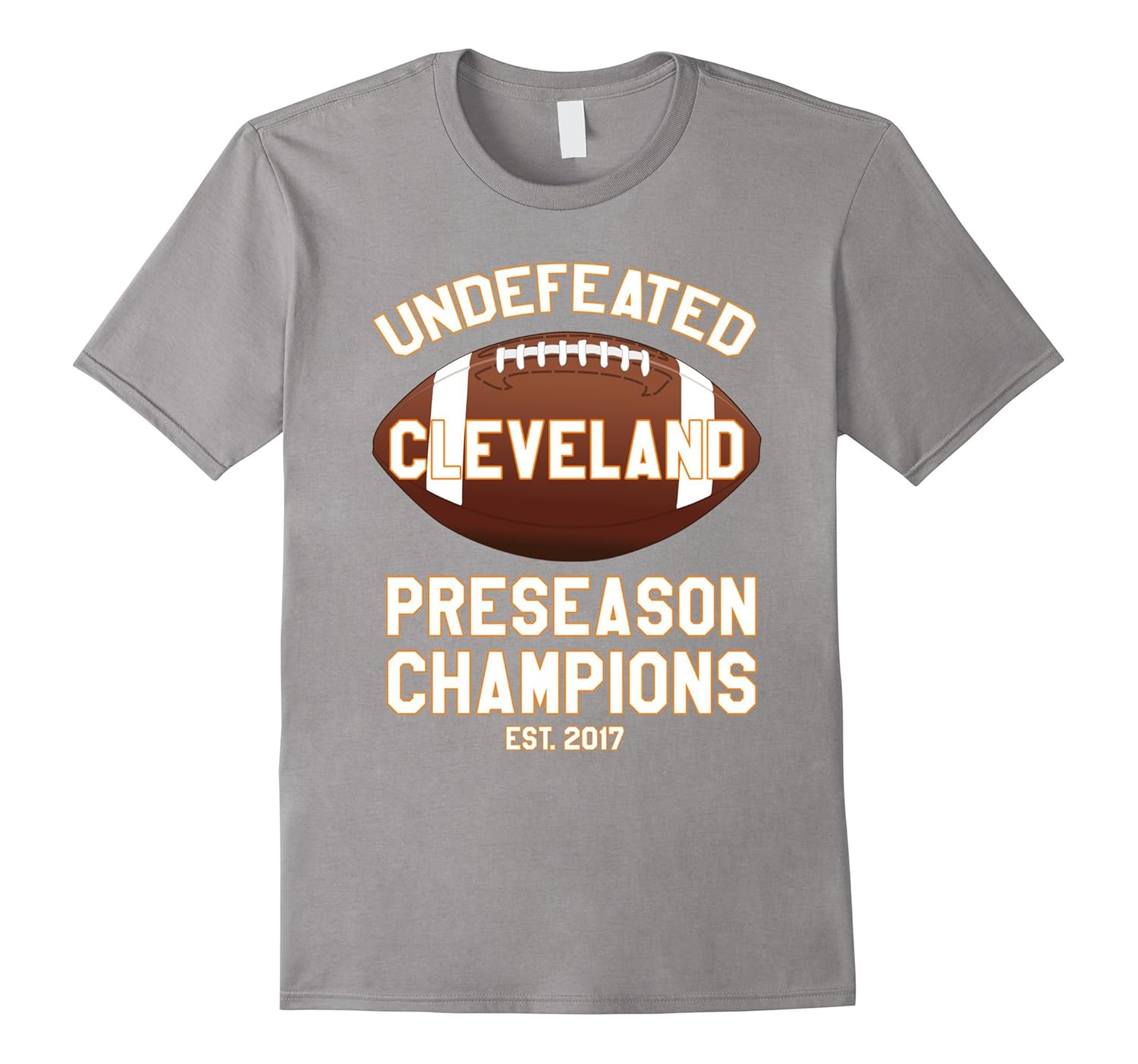 Solid colors: 100% Cotton; Heather Grey: 90% Cotton, 10% Polyester; All Other Heathers: 65% Cotton, 35% Polyester, Imported, Machine wash cold with like colors, dry low heat, Cleveland Football Undefeated Preseason Champion T-Shirt, Funny Cleveland, Ohio Shirts, Lightweight, Classic fit, Double-needle sleeve and bottom hem