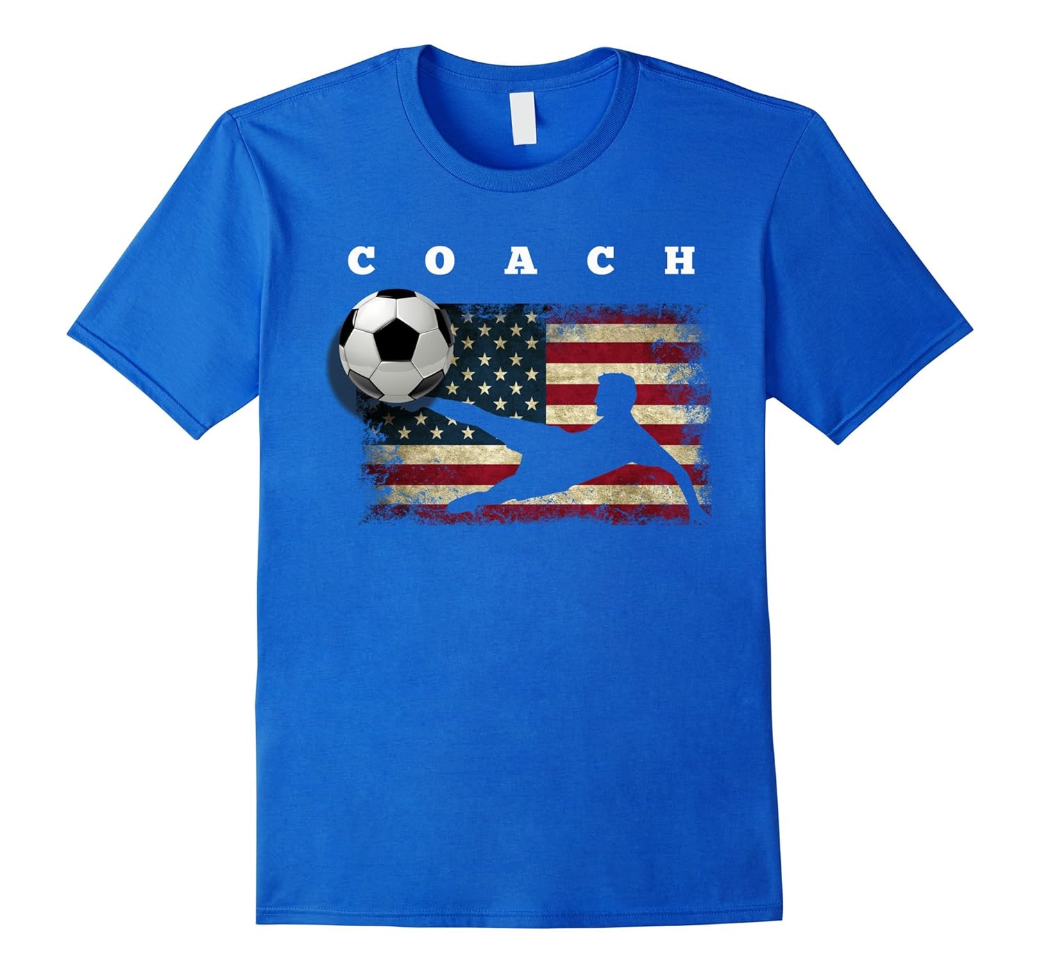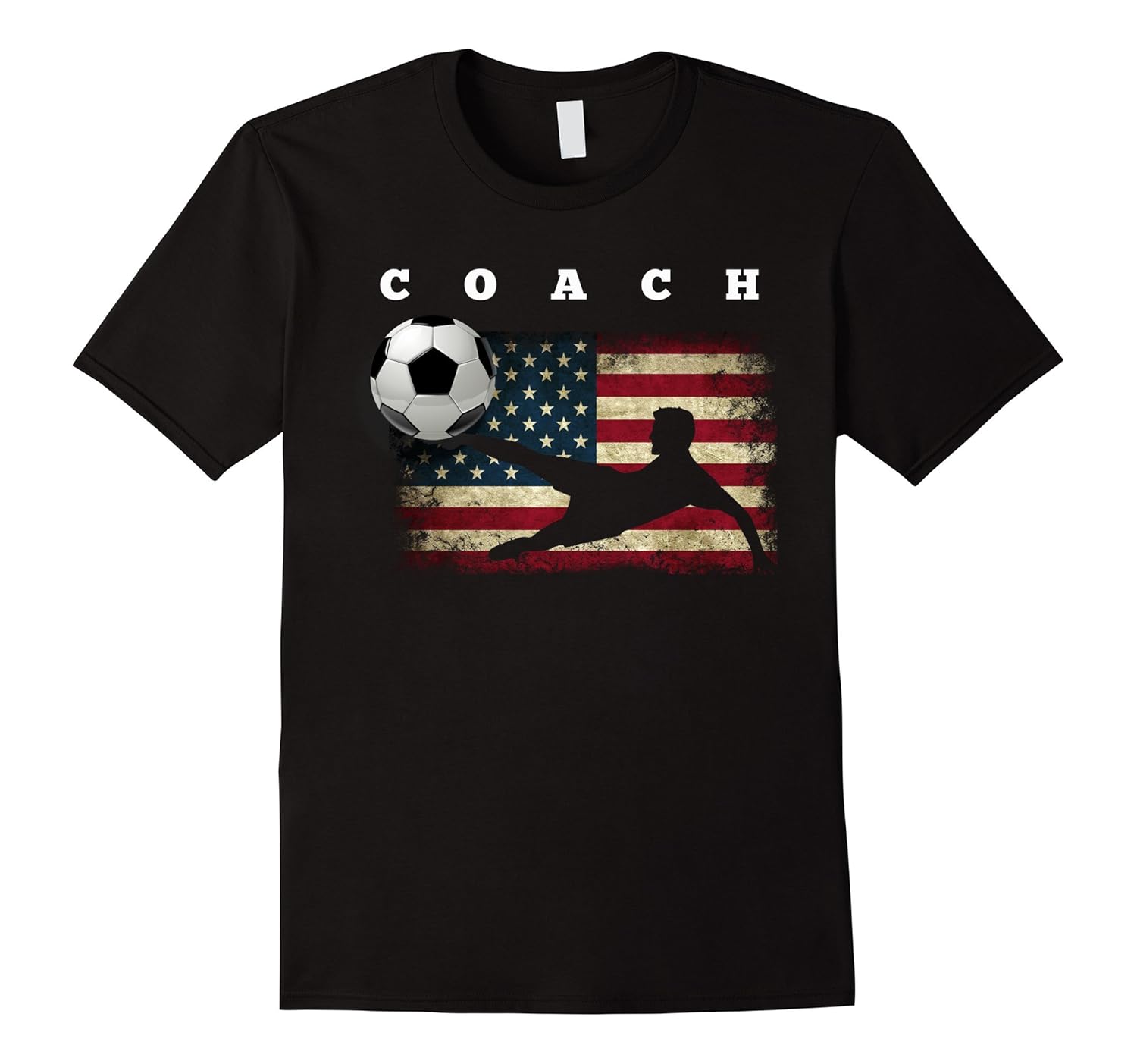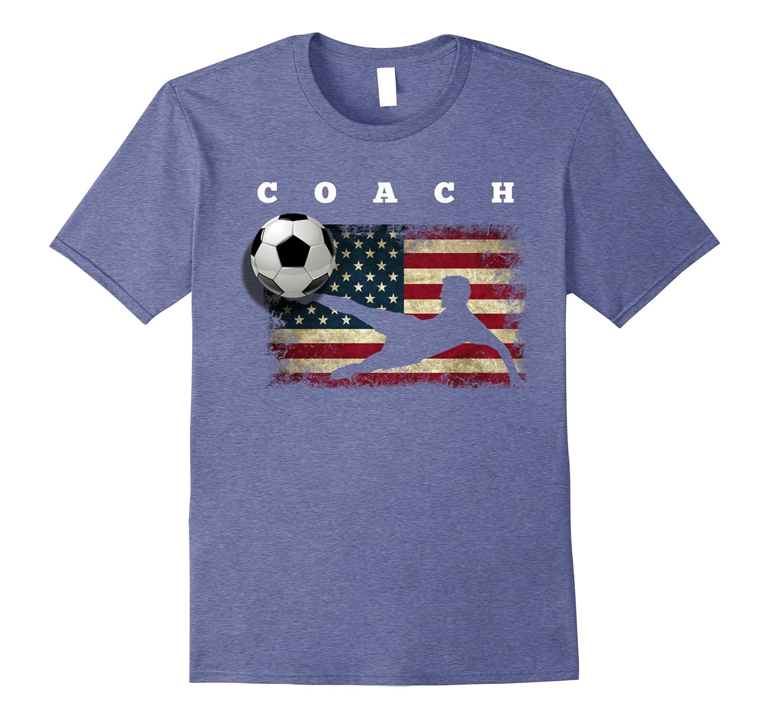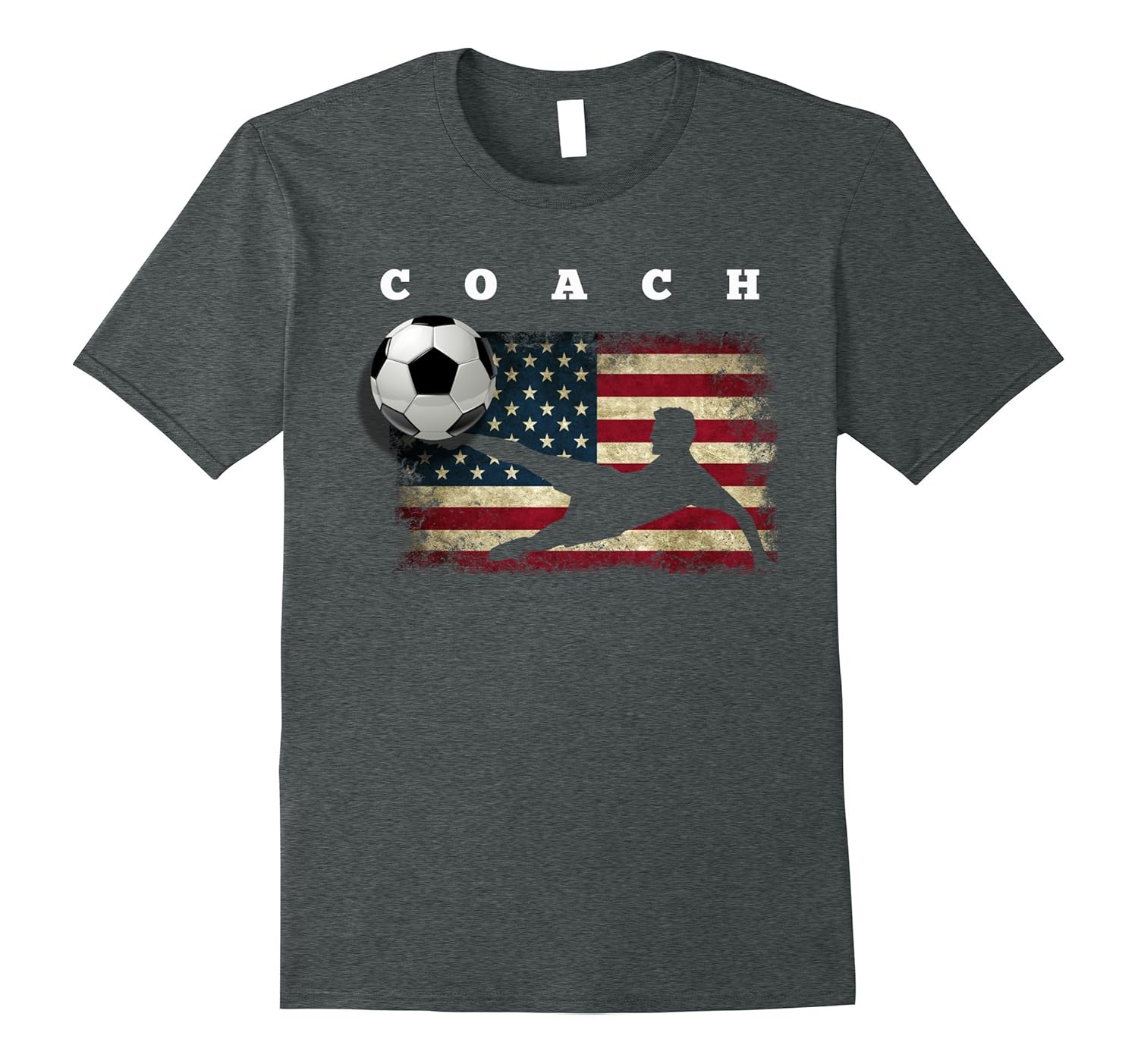 Solid colors: 100% Cotton; Heather Grey: 90% Cotton, 10% Polyester; All Other Heathers: 65% Cotton, 35% Polyester, Imported, Machine wash cold with like colors, dry low heat, This tshirt is perfect for your favorite Teacher, Instructor or Coach. Get together with the team and get a tee for your favorite Coach. Vintage style and distressed graphic of the american flag, soccer player and ball make up this perfect coaches tee. Great gift idea after you become champions! Grab one for the whole coaching staff. Lightweight, Classic fit, Double-needle sleeve and bottom hem