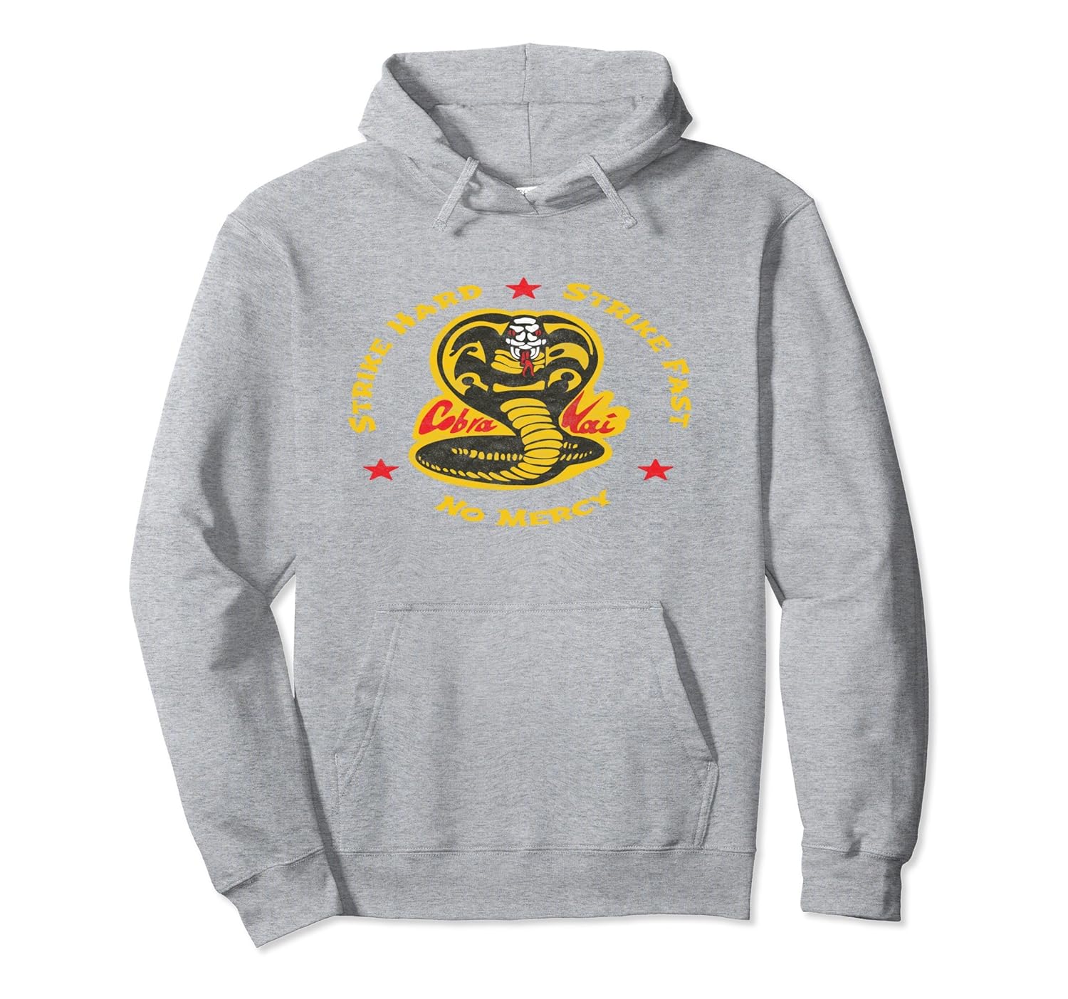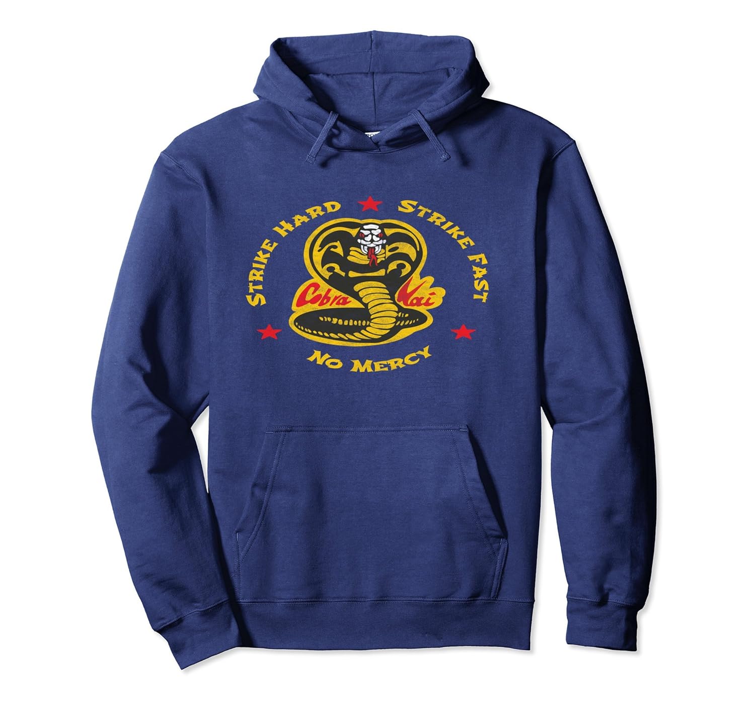 Solid colors: 80% Cotton, 20% Polyester; Heather Grey: 78% Cotton, 22% Poly; Dark Heather: 50% Cotton, 50% Polyester; Imported; Machine wash cold with like colors, dry low heat; Check out this funny martial arts Cobra Karate Strike Hard Kai Strike Fast No Mercy Hoodie T-Shirt Vintage Gift.; Do you love martial arts? Are you a black belt or perhaps a ninja? Rock this awesome Hoodie T-Shirt or purchase it as a gift.; 8.5 oz, Classic fit, Twill-taped neck