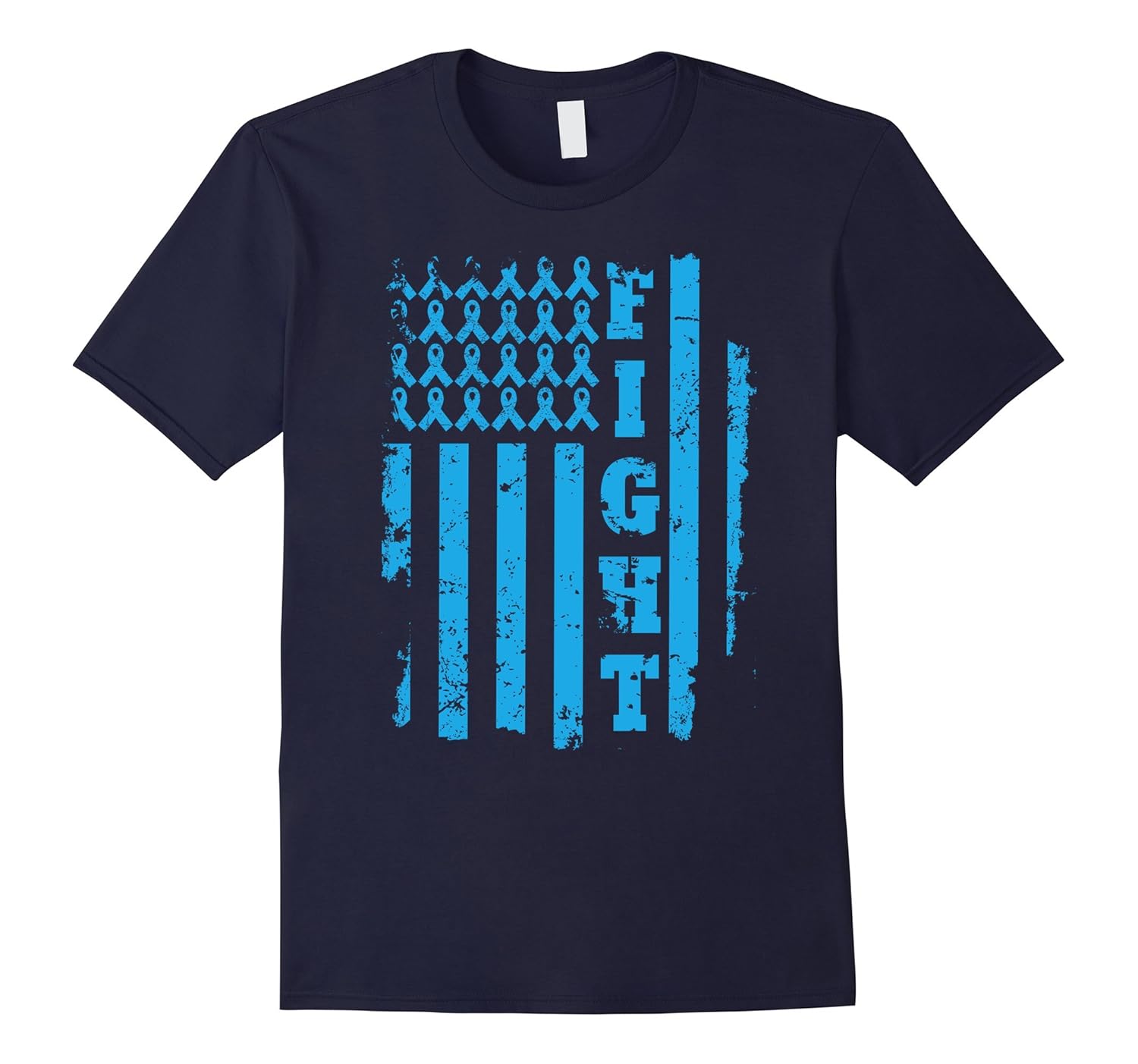 Solid colors: 100% Cotton; Heather Grey: 90% Cotton, 10% Polyester; All Other Heathers: 65% Cotton, 35% Polyester, Imported, Machine wash cold with like colors, dry low heat, Colon Cancer Fight Tshirt. Colon cancer awareness t shirt, fight cancer flag shirts, colorectal cancer awareness t-shirt. Colon Cancer Awareness Ribbon t-shirt, Colon cancer dark blue ribbon color, dark blue ribbon shirts. Lightweight, Classic fit, Double-needle sleeve and bottom hem