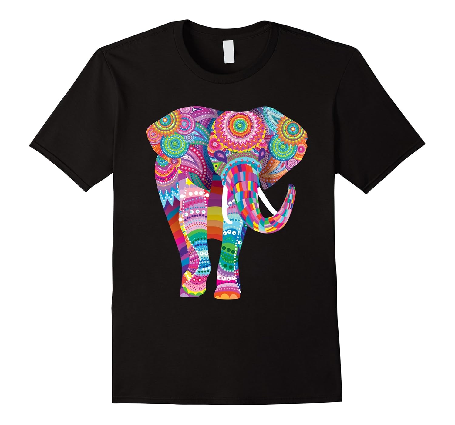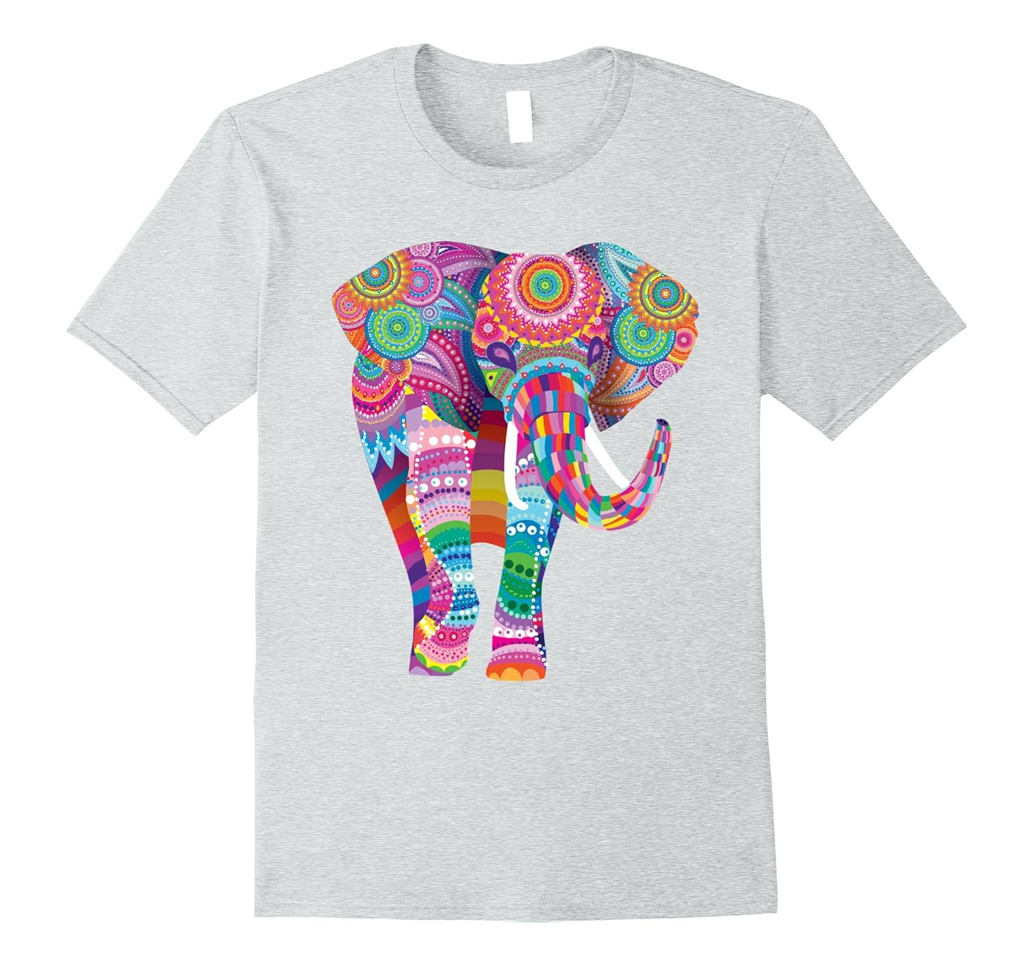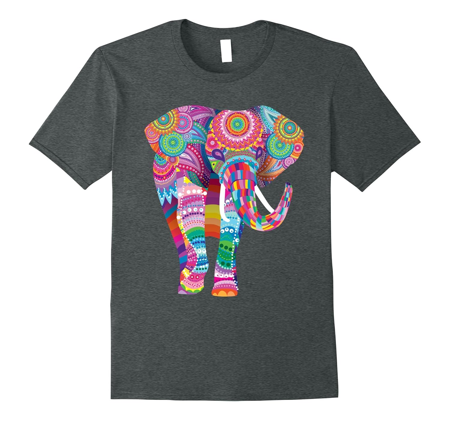 Solid colors: 100% Cotton; Heather Grey: 90% Cotton, 10% Polyester; All Other Heathers: 65% Cotton, 35% Polyester, Imported, Machine wash cold with like colors, dry low heat, Trending design for mom, sister, aunt or daughter. bright colors and great mandala type design fills this lucky elephant with color. unique christmas gift or holiday gift idea. The elephant on this design was created to bring you luck and cheer throughout the year. Great holiday gift or birthday gift for anyone who loves Elephants. Lightweight, Classic fit, Double-needle sleeve and bottom hem