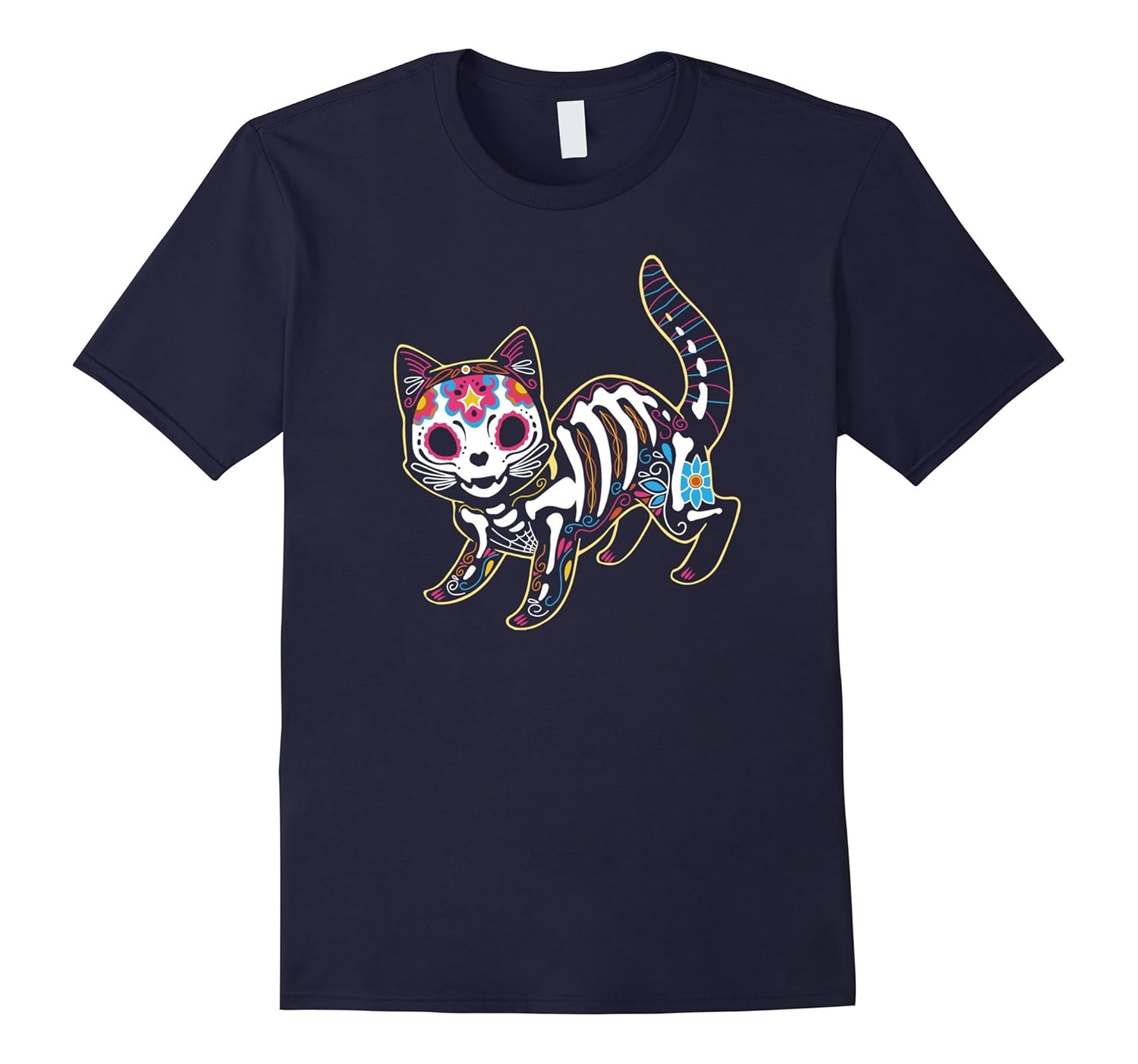 Solid colors: 100% Cotton; Heather Grey: 90% Cotton, 10% Polyester; All Other Heathers: 65% Cotton, 35% Polyester, Imported, Machine wash cold with like colors, dry low heat, This colorful Halloween black cat with skeleton in the tradition of the Day of the Dead Sugar Skulls is perfect for cat lovers. Makes a great gift for not only Halloween but also Christmas, birthdays and any time of the year. Lightweight, Classic fit, Double-needle sleeve and bottom hem
