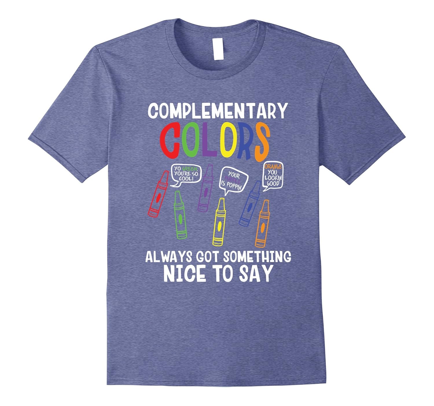 Solid colors: 100% Cotton; Heather Grey: 90% Cotton, 10% Polyester; All Other Heathers: 65% Cotton, 35% Polyester; Imported; Machine wash cold with like colors, dry low heat; Inspire more people to be nice to each other and encourage them to be more like complementary colors by wearing this playful cool artist shirt. Makes a great gift for any art teacher or creative student who loves creating with crayons, color pencils, paint; Complementary Colors Funny Artist Art Teacher T-Shirt is designed and printed to be fitted. For a more baggy fit, please order a size up. This t-shirt makes a perfect present for a birthday, anniversary, graduation or any other gift giving occasion.; Lightweight, Classic fit, Double-needle sleeve and bottom hem