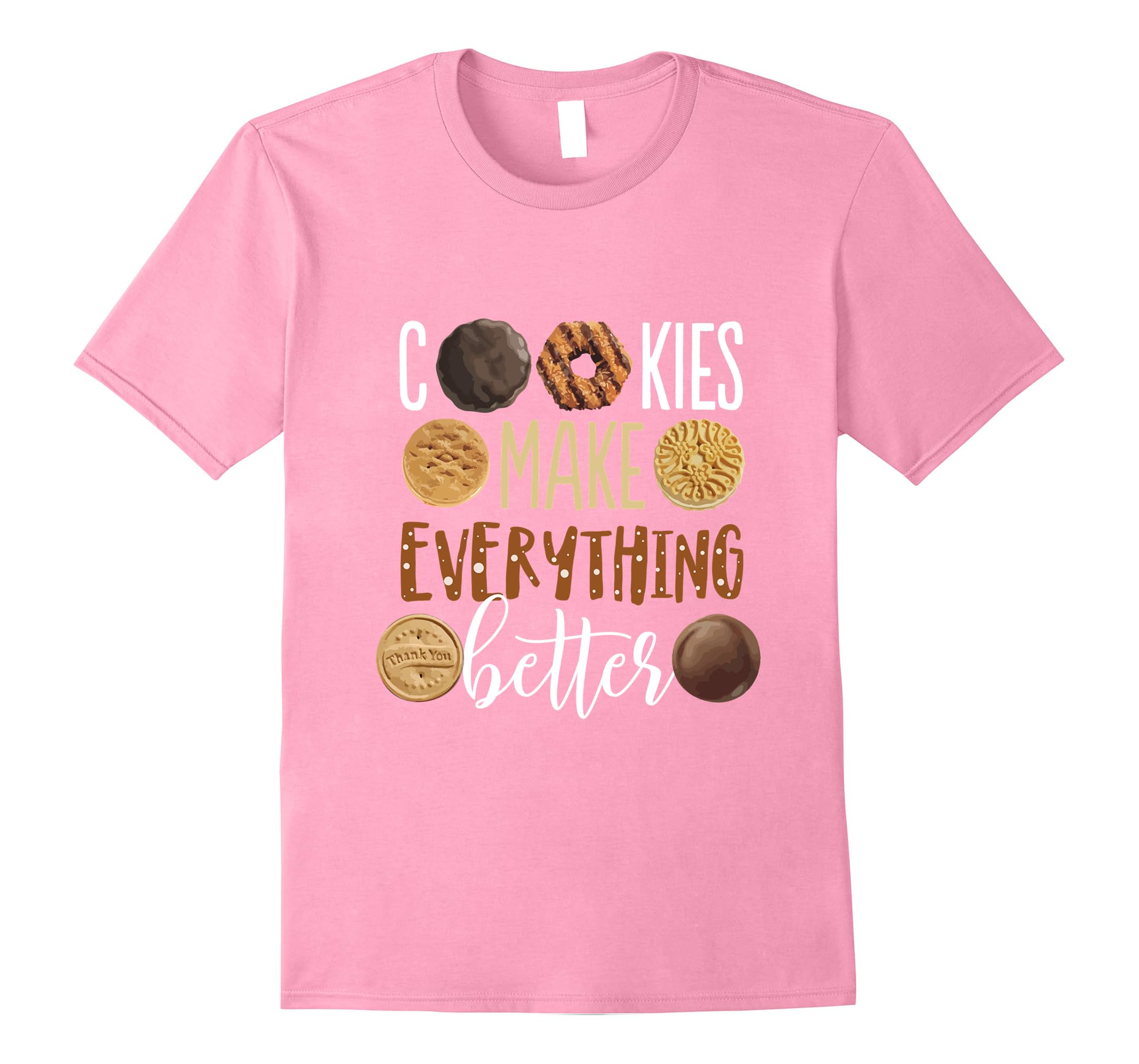 Solid colors: 100% Cotton; Heather Grey: 90% Cotton, 10% Polyester; All Other Heathers: 50% Cotton, 50% Polyester; Imported; Machine wash cold with like colors, dry low heat; This graphic tee shirt is printed with the phrase: Cookies make everything better. It is perfect for a cookie lover, baker, and men, women, girls, and boys.; This Cookies Make Everything Better T shirt is designed and printed to be fitted. For a more loose fit, please order a size up.; Lightweight, Classic fit, Double-needle sleeve and bottom hem