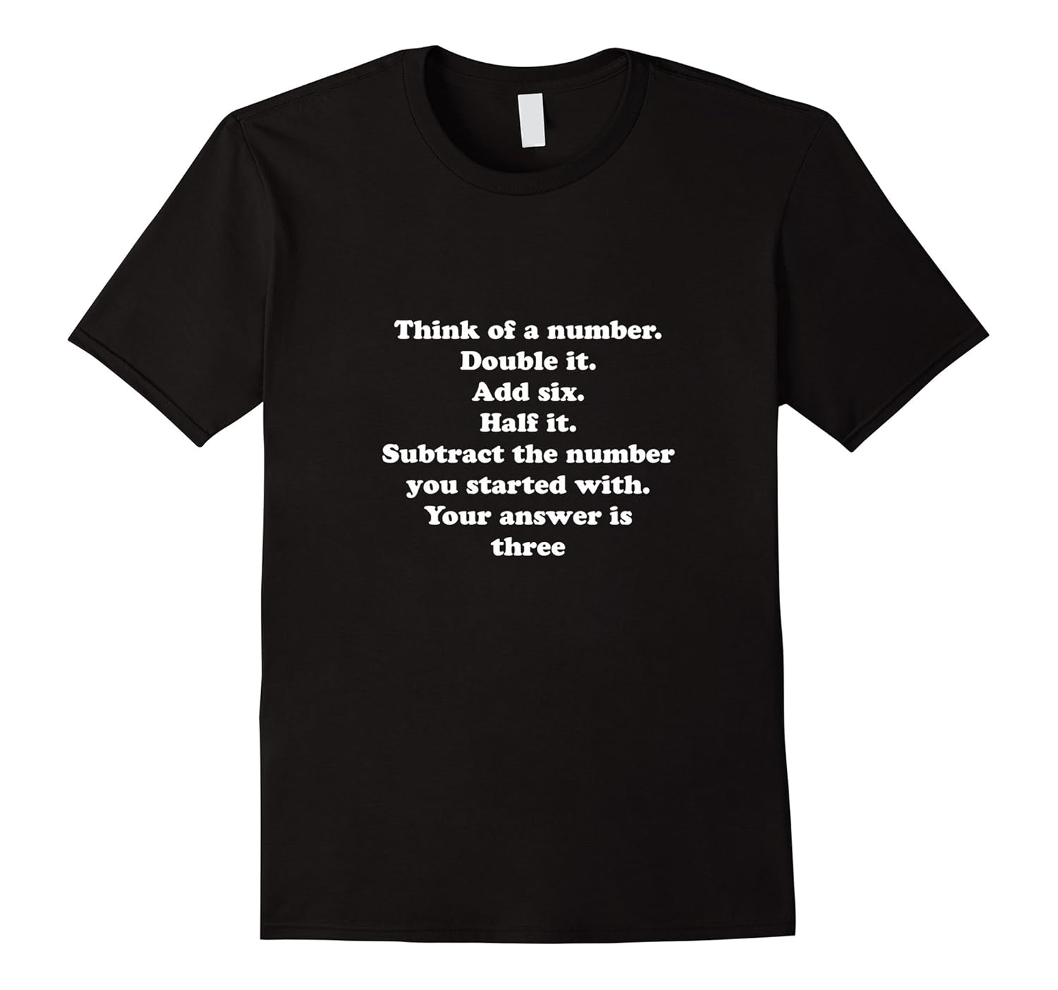 Solid colors: 100% Cotton; Heather Grey: 90% Cotton, 10% Polyester; All Other Heathers: 65% Cotton, 35% Polyester, Imported, Machine wash cold with like colors, dry low heat, A funny math t shirt that reads: Think of a number Double it Add six Half it Subtract the number you started with your answer is three. Even if you”re not struggling with math, this is a hilarious shirt to show off to your math teacher or math geek to reveal your sarcastic side. Comfortable to wear during occasion, parties, events and back to school!, Perfect for Christmas, Halloween, Father”s Day for Dad, Mother”s Day for Mom, Thanksgiving, Veterans Day, the perfect idea for your brother, sister, nephew, niece, uncle, aunt, grandchild. Long lasting tees you will love!, Lightweight, Classic fit, Double-needle sleeve and bottom hem