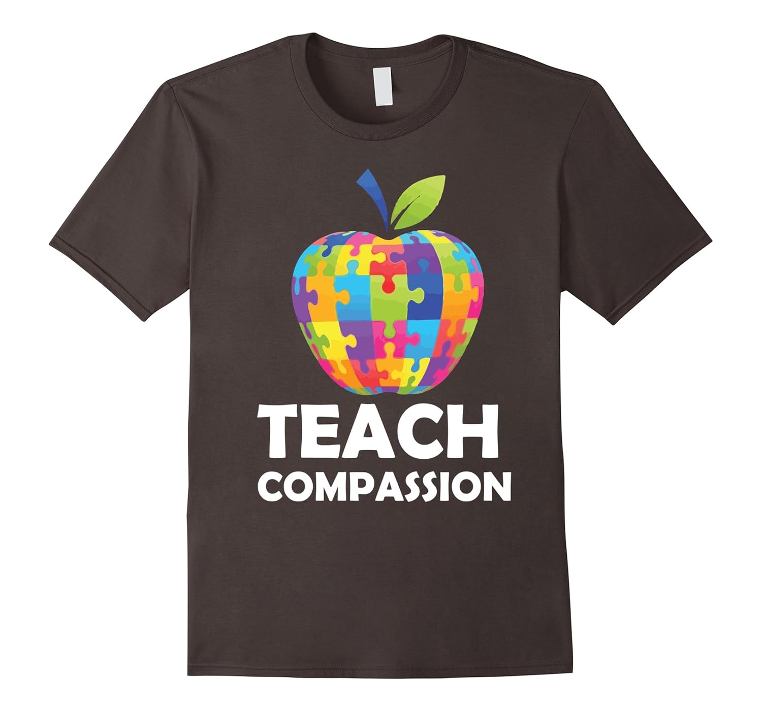 Solid colors: 100% Cotton; Heather Grey: 90% Cotton, 10% Polyester; All Other Heathers: 65% Cotton, 35% Polyester; Imported; Machine wash cold with like colors, dry low heat; Teach compassion graphic tshirt. For the teacher, professor, student aid and every educator. Features a puzzled apple with a bold text. Makes a great educational gift.; This Teachers T-Shirt is designed and printed to be FITTED. For a more loose fit, PLEASE ORDER A SIZE UP.; Lightweight, Classic fit, Double-needle sleeve and bottom hem