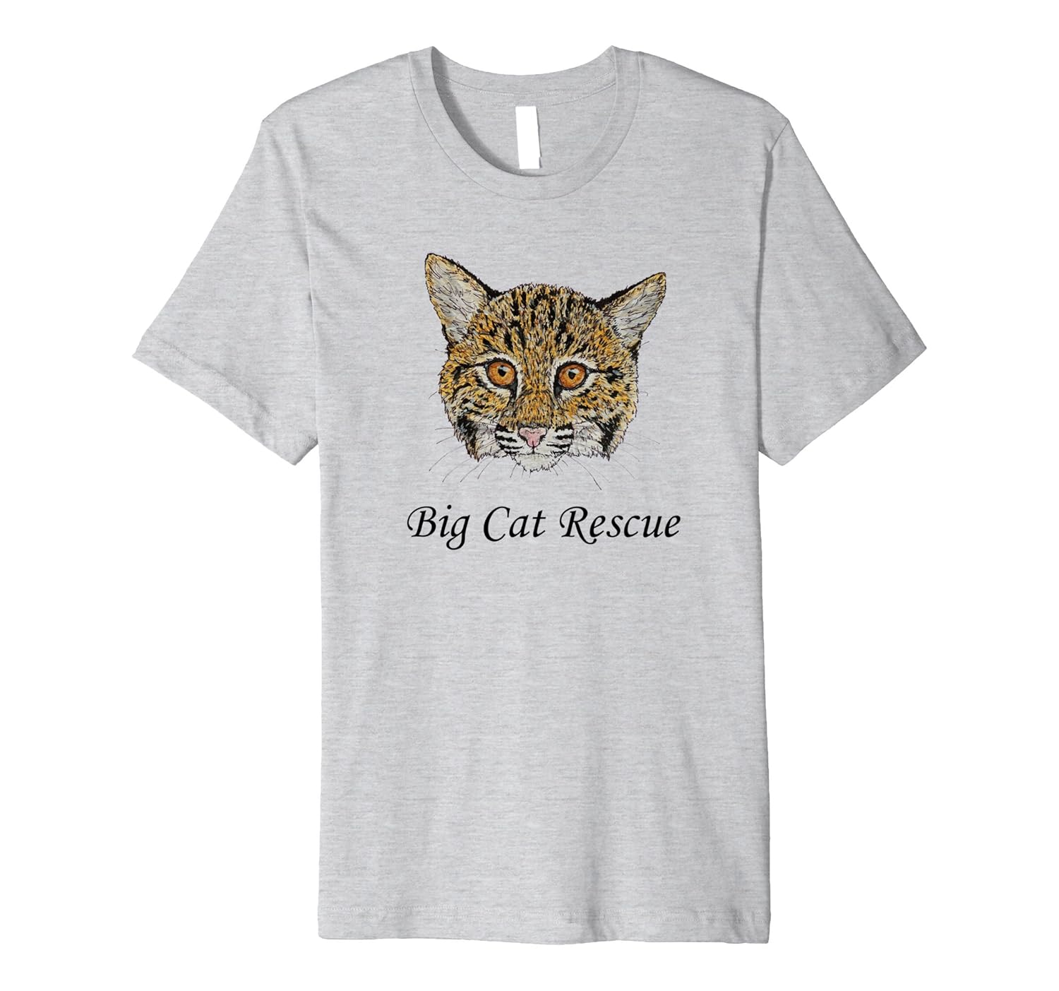 Solid colors: 100% Cotton; Heather Grey: 90% Cotton, 10% Polyester; All Other Heathers: 58% Cotton, 42% Polyester; Imported; Machine wash cold with like colors, dry low heat; Bobcat design by Big Cat Rescuer Emma Buck; Fit: Slim (consider ordering a larger size for a looser fit); Cooper bobcat is getting rehabbed for release; This premium t-shirt is made of lightweight fine jersey fabric