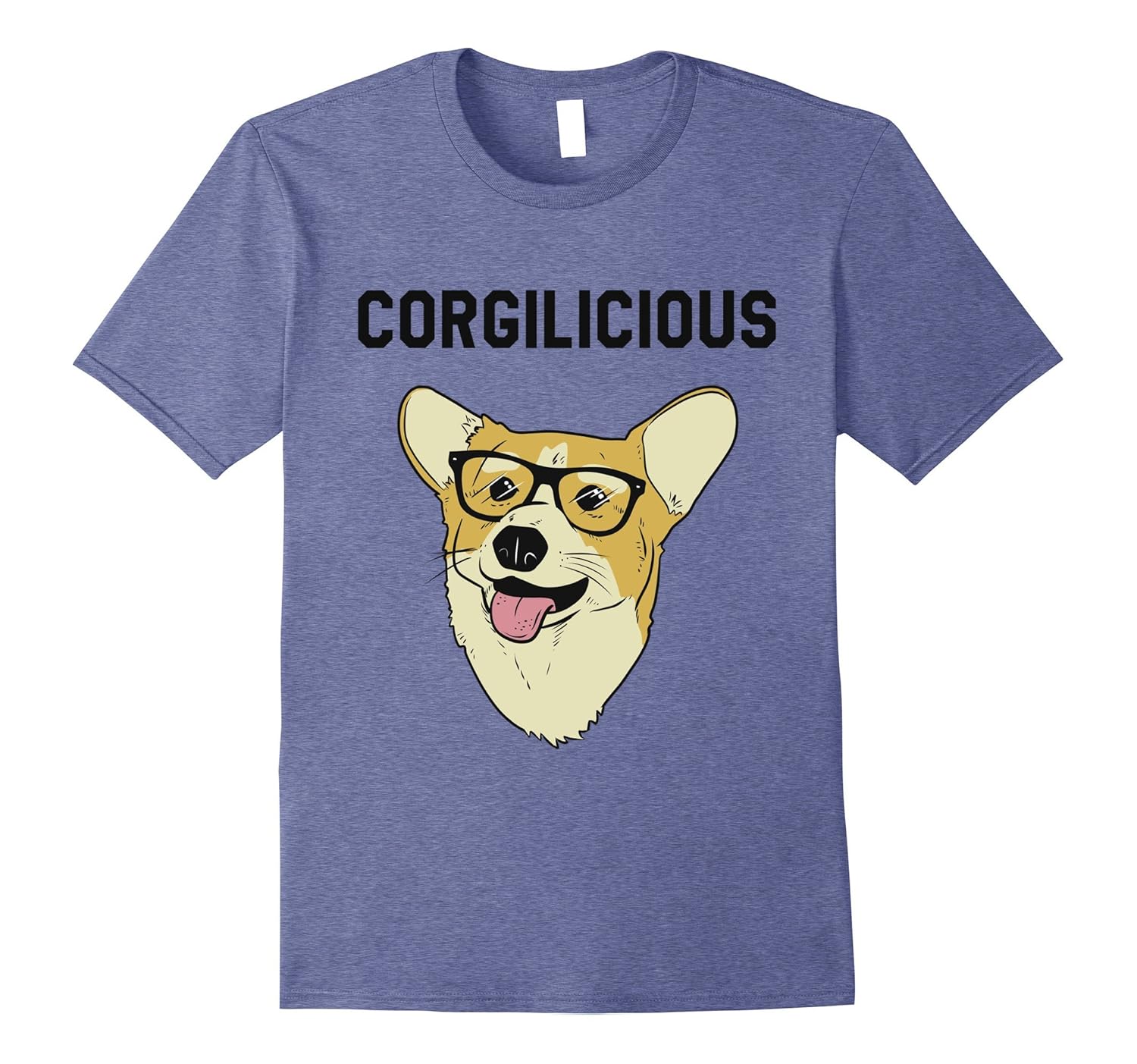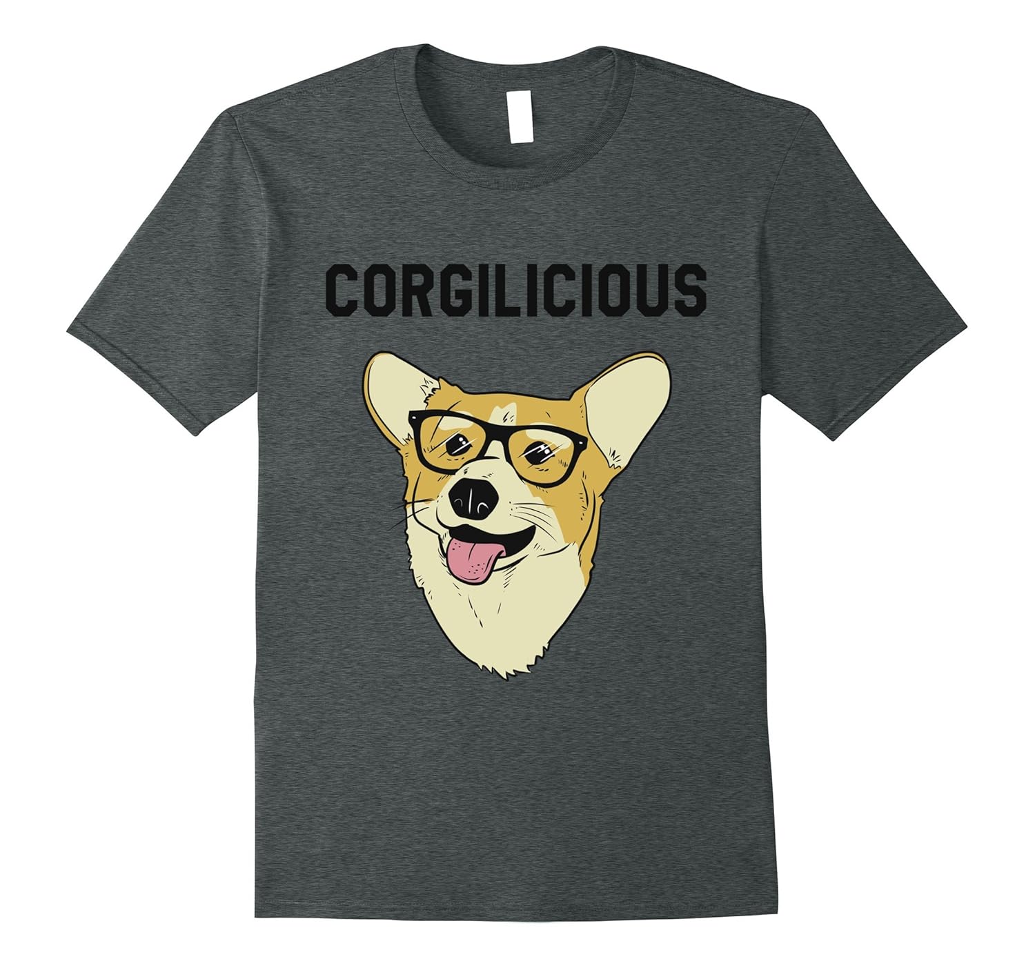 Solid colors: 100% Cotton; Heather Grey: 90% Cotton, 10% Polyester; All Other Heathers: 65% Cotton, 35% Polyester, Imported, Machine wash cold with like colors, dry low heat, Artwork features a gigantic illustration of an adorable and cute corgi, smiling in nerd glasses and the text “Corgilicious.” Available in multiple shirt colors. Designed for dog lovers, trend setters, popular people and dorks. Nerds and corgi mom and dad. Pet sitters and dog walkers. Perfect gift for the dog or corgi lover in your life. Lightweight, Classic fit, Double-needle sleeve and bottom hem