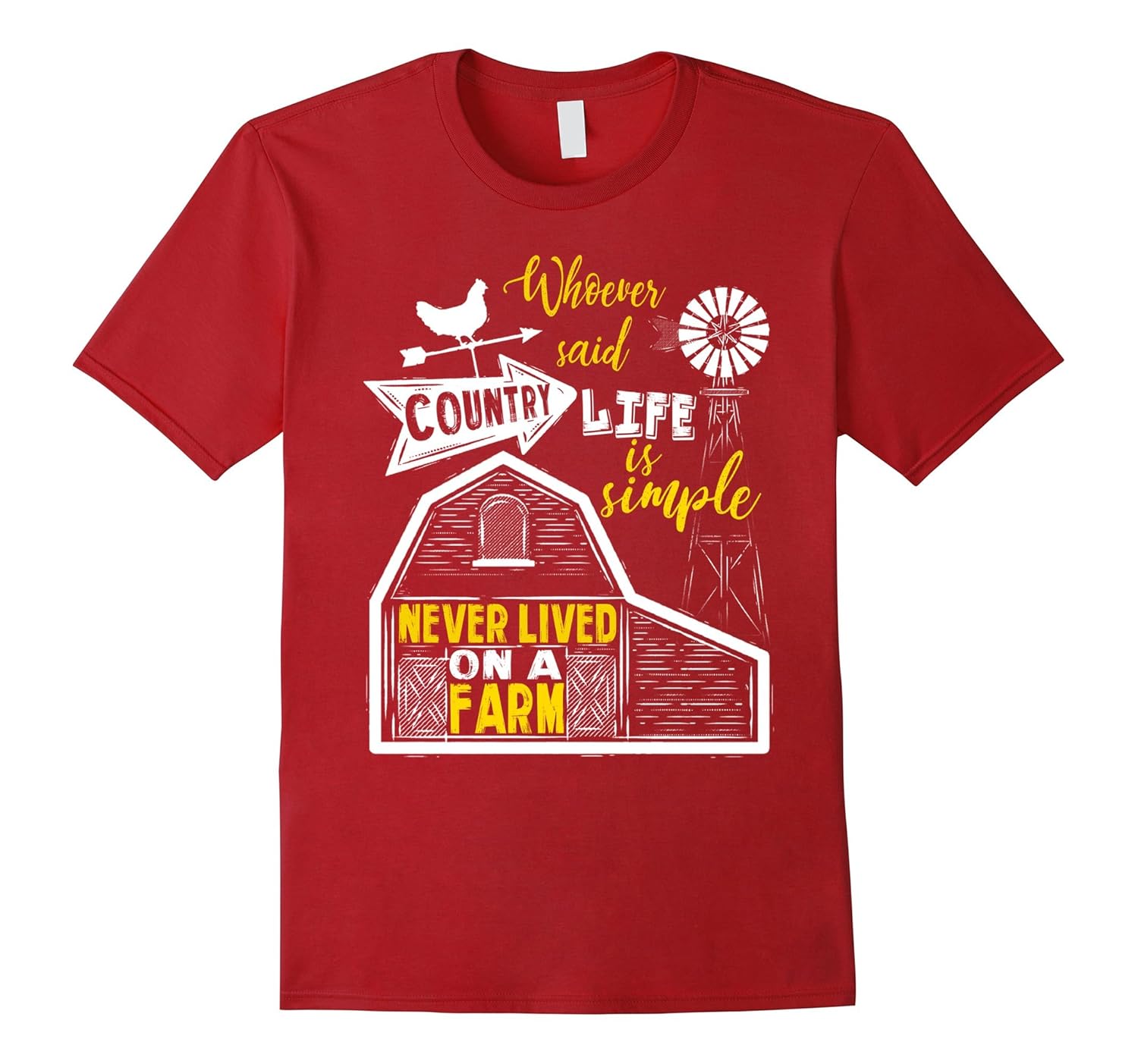 Solid colors: 100% Cotton; Heather Grey: 90% Cotton, 10% Polyester; All Other Heathers: 65% Cotton, 35% Polyester, Imported, Machine wash cold with like colors, dry low heat, Whoever Said Country Life is Simple Never Lived on a Farm T-shirts, funny farming t shirts, Lightweight, Classic fit, Double-needle sleeve and bottom hem