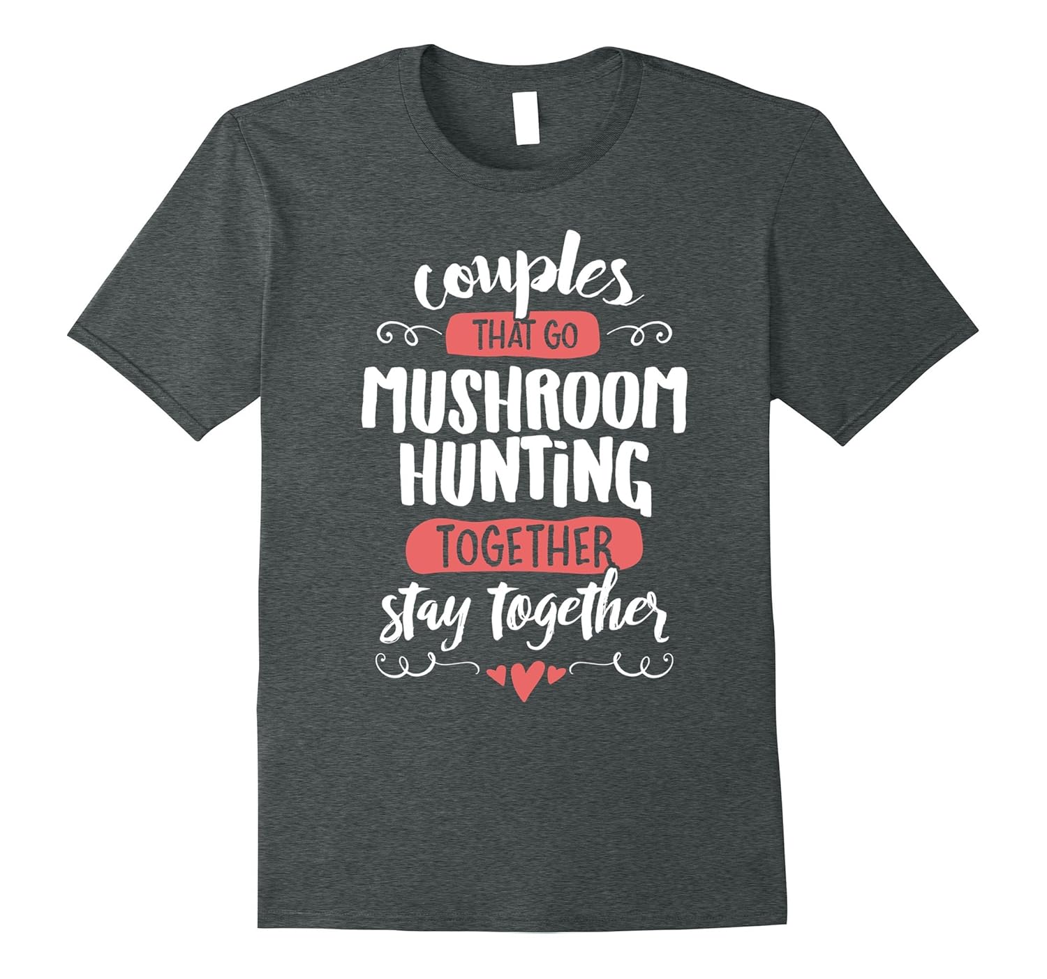 Solid colors: 100% Cotton; Heather Grey: 90% Cotton, 10% Polyester; All Other Heathers: 65% Cotton, 35% Polyester, Imported, Machine wash cold with like colors, dry low heat, Cute matching Mushroom Hunting Couples T-Shirt for Men and Women! For any couple that loves to go Mushroom Hunting together, this makes a great brithday present, X-mas present or Christmas gift!, Couples that go Mushroom Hunting Together, Stay Together! Great His and Hers Mushroom Hunting Shirts to wear as a couple. Adorable wedding gift or anniversary present for husband and wife!, Lightweight, Classic fit, Double-needle sleeve and bottom hem