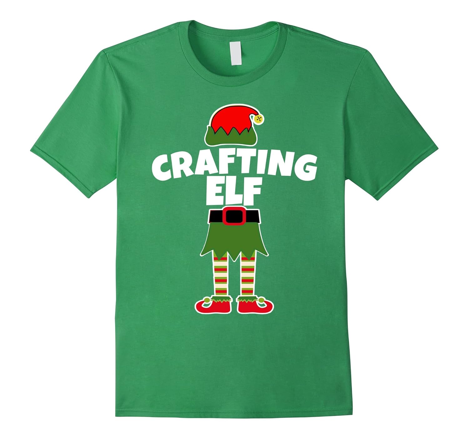 Solid colors: 100% Cotton; Heather Grey: 90% Cotton, 10% Polyester; All Other Heathers: 65% Cotton, 35% Polyester; Imported; Machine wash cold with like colors, dry low heat; CRAFTING ELF T SHIRT- All Crafters will love this cute Holiday design. Perfect gift for anyone who love to make arts Andamp; crafts! ! Give this as an early Christmas present so Craft Lovers can enjoy it all the way up to Christmas Day!; With a little elf hat and striped legs, this Holiday career shirt will be a festive way to celebrate the Holiday Season in your job, office, school or just out Christmas shopping. Matching shirts for the whole family available.; Lightweight, Classic fit, Double-needle sleeve and bottom hem