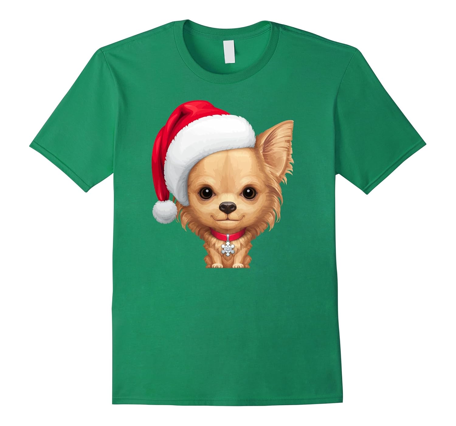 Solid colors: 100% Cotton; Heather Grey: 90% Cotton, 10% Polyester; All Other Heathers: 65% Cotton, 35% Polyester; Imported; Machine wash cold with like colors, dry low heat; Merry Christmas and Happy New Year for all of us Chihuahua lovers! This graphic tee shirt featuring a cute longhaired puppy will be a great outfit for the upcoming holiday season. Isnt this the perfect way to share our love for Chihuahuas with the world?; The original image of long haired pup wearing a Santa Claus hat was specially designed by Stonemask Studio for the proud owners of this amazing dog breed. So, this tshirt can be also a nice Xmas gift idea for that special Chiwawa mom or dad in your life!; Lightweight, Classic fit, Double-needle sleeve and bottom hem