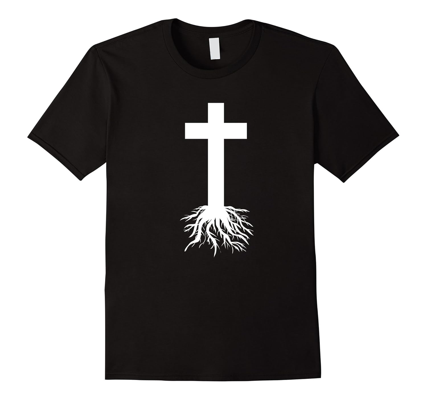Solid colors: 100% Cotton; Heather Grey: 90% Cotton, 10% Polyester; All Other Heathers: 65% Cotton, 35% Polyester, Imported, Machine wash cold with like colors, dry low heat, Christianity shirt featuring a cross with roots to show your roots in your beliefs in Jesus and God tee shirt, Lightweight, Classic fit, Double-needle sleeve and bottom hem