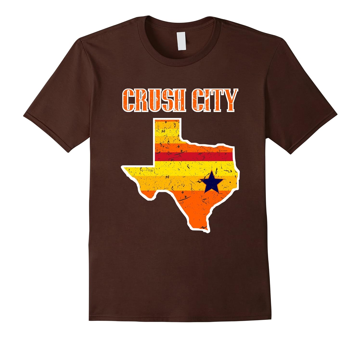 Solid colors: 100% Cotton; Heather Grey: 90% Cotton, 10% Polyester; All Other Heathers: 65% Cotton, 35% Polyester, Imported, Machine wash cold with like colors, dry low heat, Show your Houston hometown pride with this great ballpark retro baseball design. Shirt matches baseball hat, glove, batting helmet, cleats or spikes. crush city retro texas rainbow star design. Makes a great gift idea. Lightweight, Classic fit, Double-needle sleeve and bottom hem