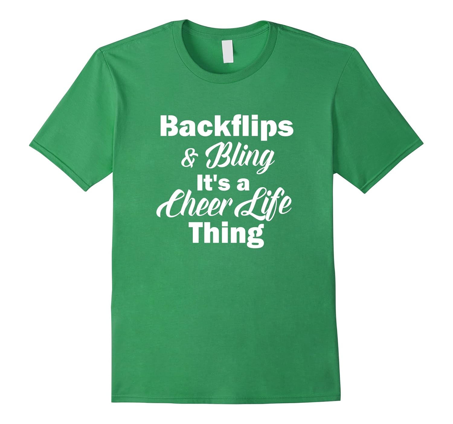 Solid colors: 100% Cotton; Heather Grey: 90% Cotton, 10% Polyester; All Other Heathers: 65% Cotton, 35% Polyester, Imported, Machine wash cold with like colors, dry low heat, Our Cheerleading Quote Shirt is perfect for your favorite Cheer athlete, Coach or Cheer Mom to wear to pep rallies or competitions. Cute Cheer tshirt makes an awesome cheerleader gift t-shirt idea. Funny Cheerleader t shirt saying: Backflips and; Bling, It”s a Cheer Life Thing. Our funny cheer tshirt for teen girls, women, or kids, compliments your cheer bows and skirt for school spirit, cheer camp or practice, Lightweight, Classic fit, Double-needle sleeve and bottom hem