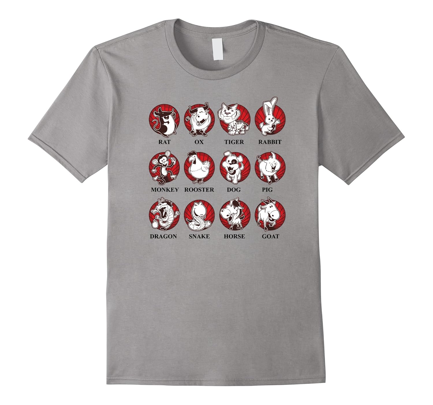 Solid colors: 100% Cotton; Heather Grey: 90% Cotton, 10% Polyester; All Other Heathers: 65% Cotton, 35% Polyester; Imported; Machine wash cold with like colors, dry low heat; All the Chinese Zodiacs in one shirt. Celebrate the Chinese New Year with this amazing shirt. Images of each.; Lunar New Year and CHinese New Year is around the corner. This year is the Year of the Rooster or Yer of the Cock. Great for them. This one celebrates everyone during this time.; Lightweight, Classic fit, Double-needle sleeve and bottom hem