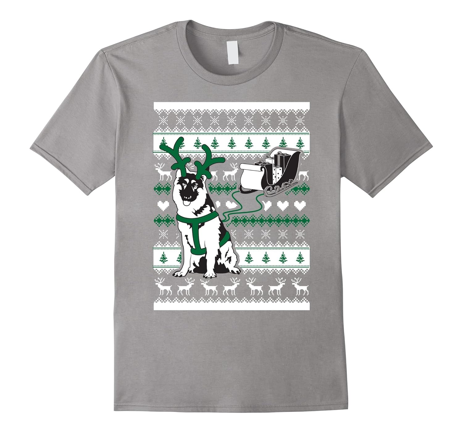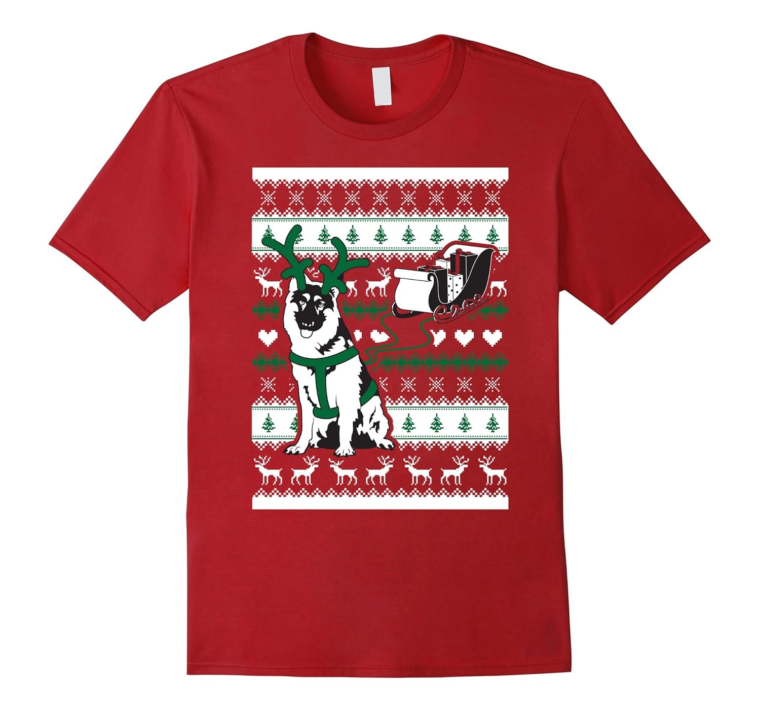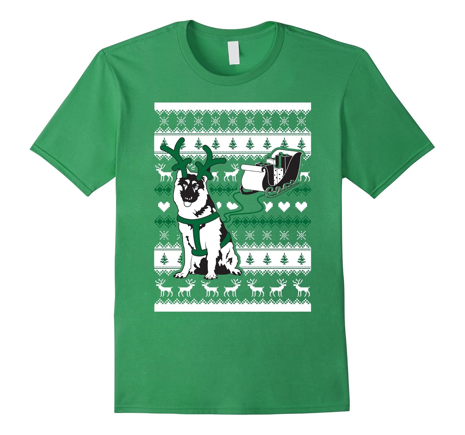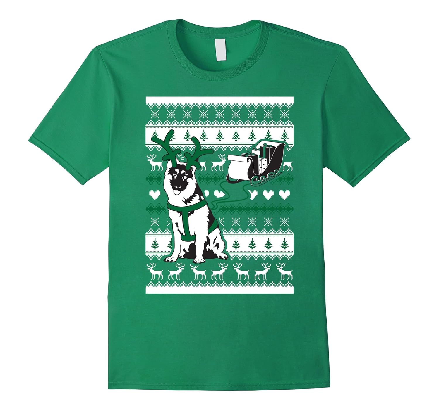 100% Cotton; Imported; Machine wash cold with like colors, dry low heat; Cute Christmas German Shepherd T-Shirt for Women, Men or Youth; This super cute Christmas German Shepherd Shirt is made in the style of an Ugly Christmas German Shepherd Sweater, perfect for any holiday parties for any German Shepherd Lover!; Lightweight, Classic fit, Double-needle sleeve and bottom hem