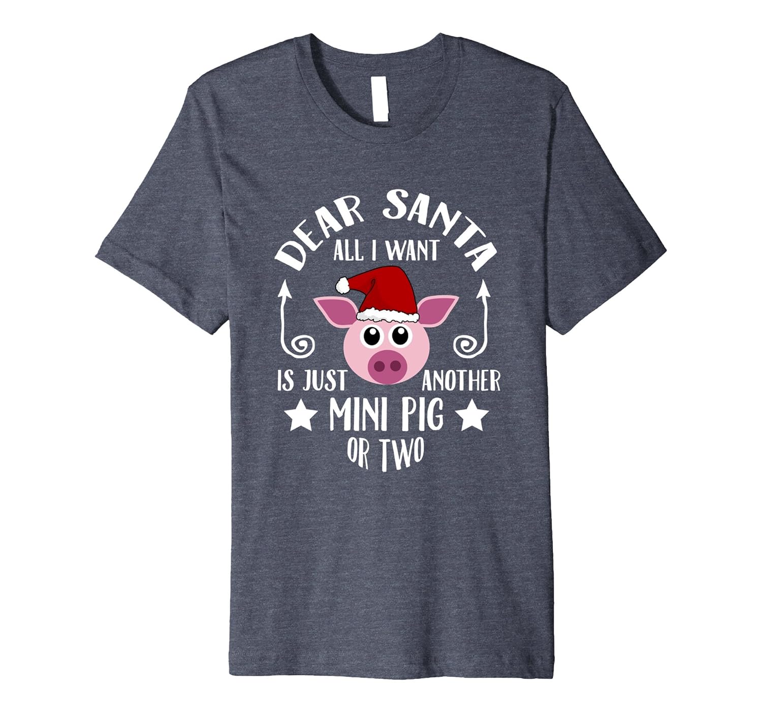 Solid colors: 100% Cotton; Heather Grey: 90% Cotton, 10% Polyester; All Other Heathers: 58% Cotton, 42% Polyester; Imported; Machine wash cold with like colors, dry low heat; This cute Dear Santa, All I Want Is Another Mini Pig Or Two is a unique and funny tshirt for all who love; raise or rescue pet pigs and mini pigs. This T-shirt is also great gift for anyone who loves mini pigs; pot bellied pigs or farm pigs!; Fit: Slim (consider ordering a larger size for a looser fit); Show proudly your love and affection for this extraordinary and wonderful pet with this funny shirt. Makes also a great Christmas gift for pig enthusiasts or perfext outfit for a ugly christmas sweater party; This premium t-shirt is made of lightweight fine jersey fabric