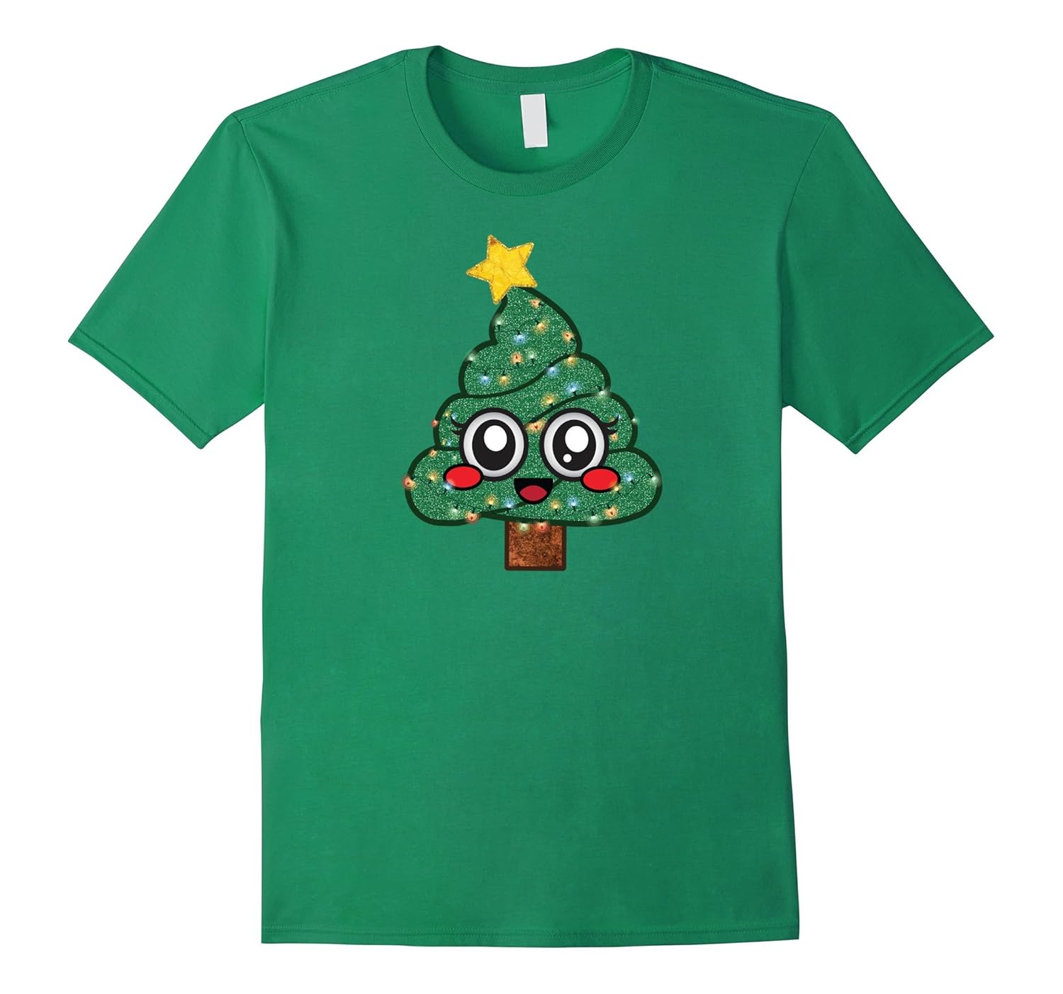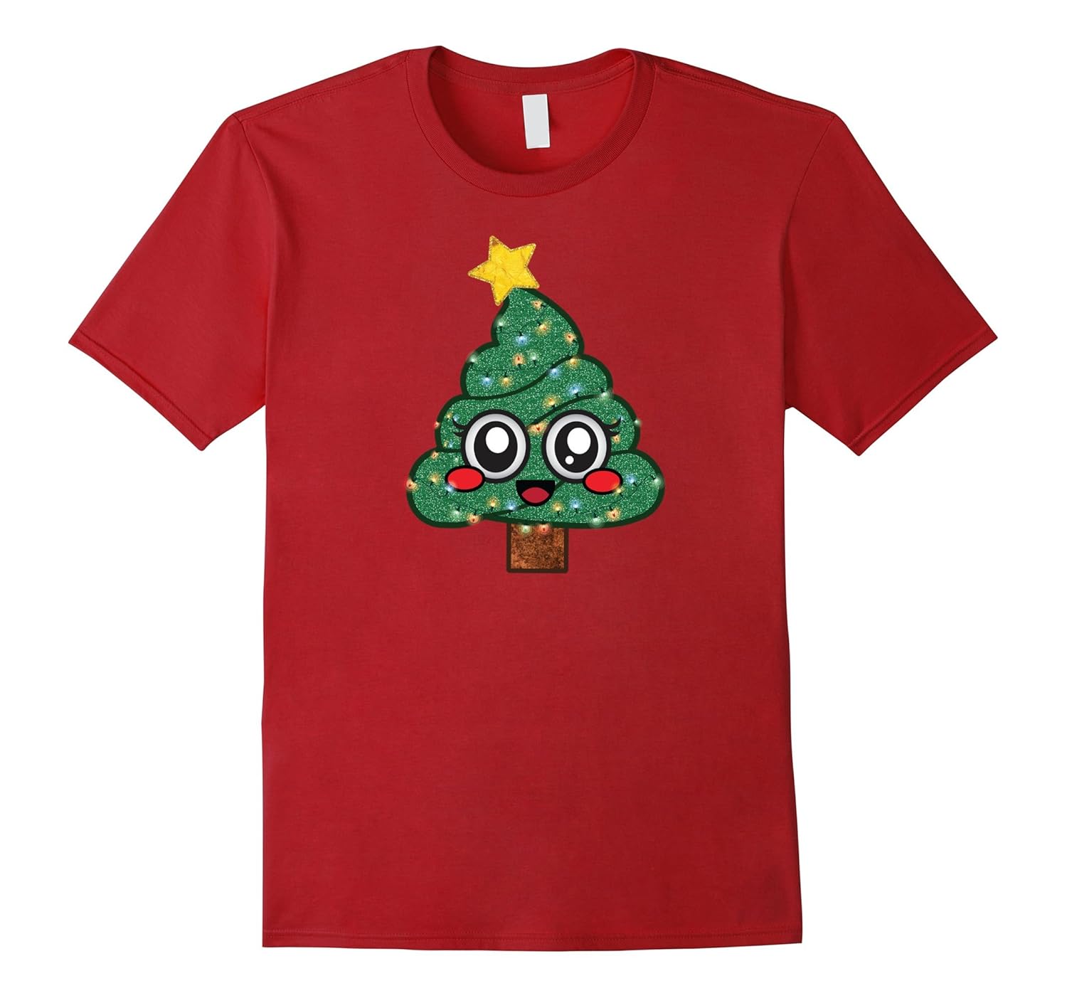 Cute Emoji Christmas Tree Girl Lights Funny Emoji Poop Shirt-ANZ