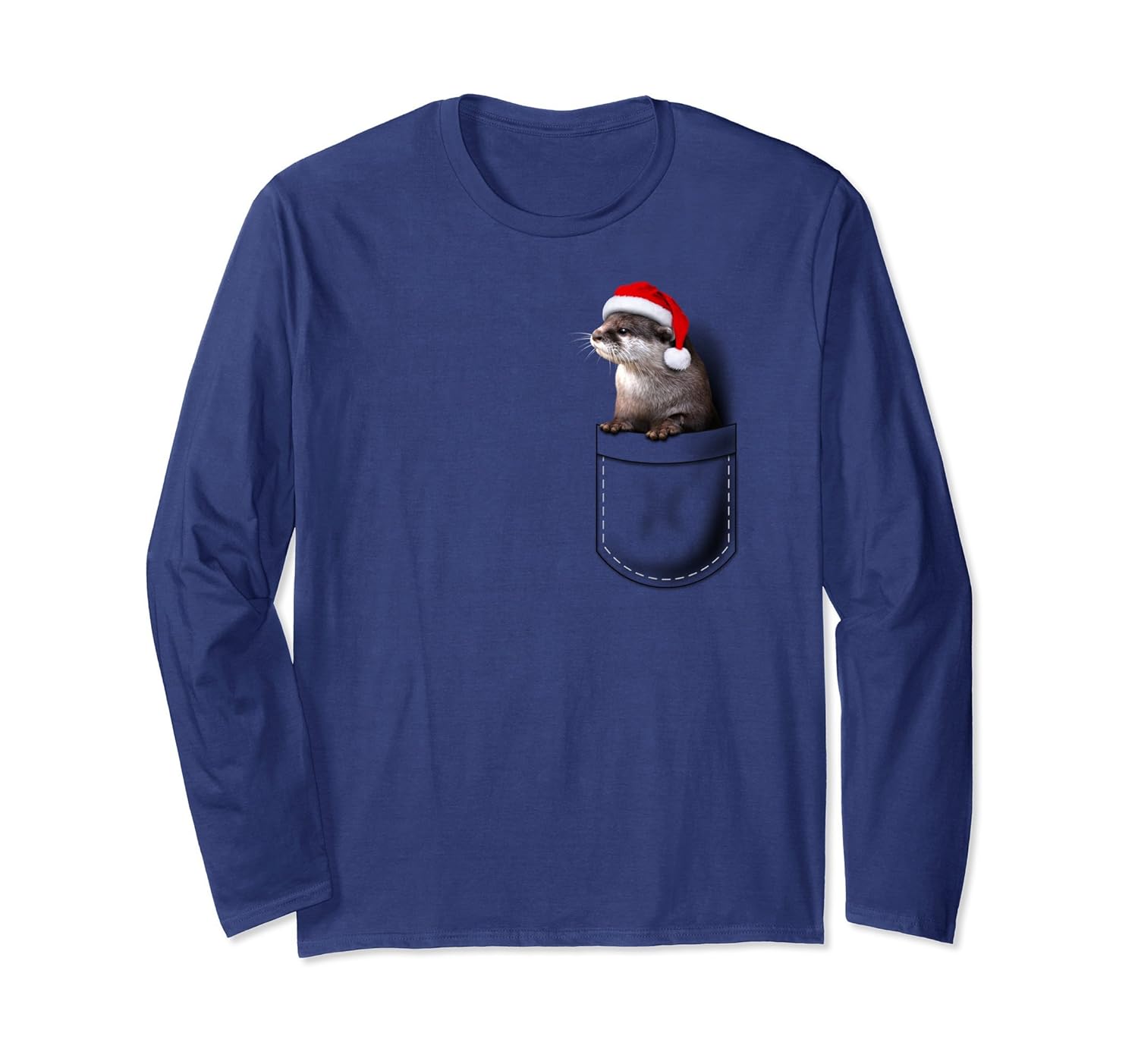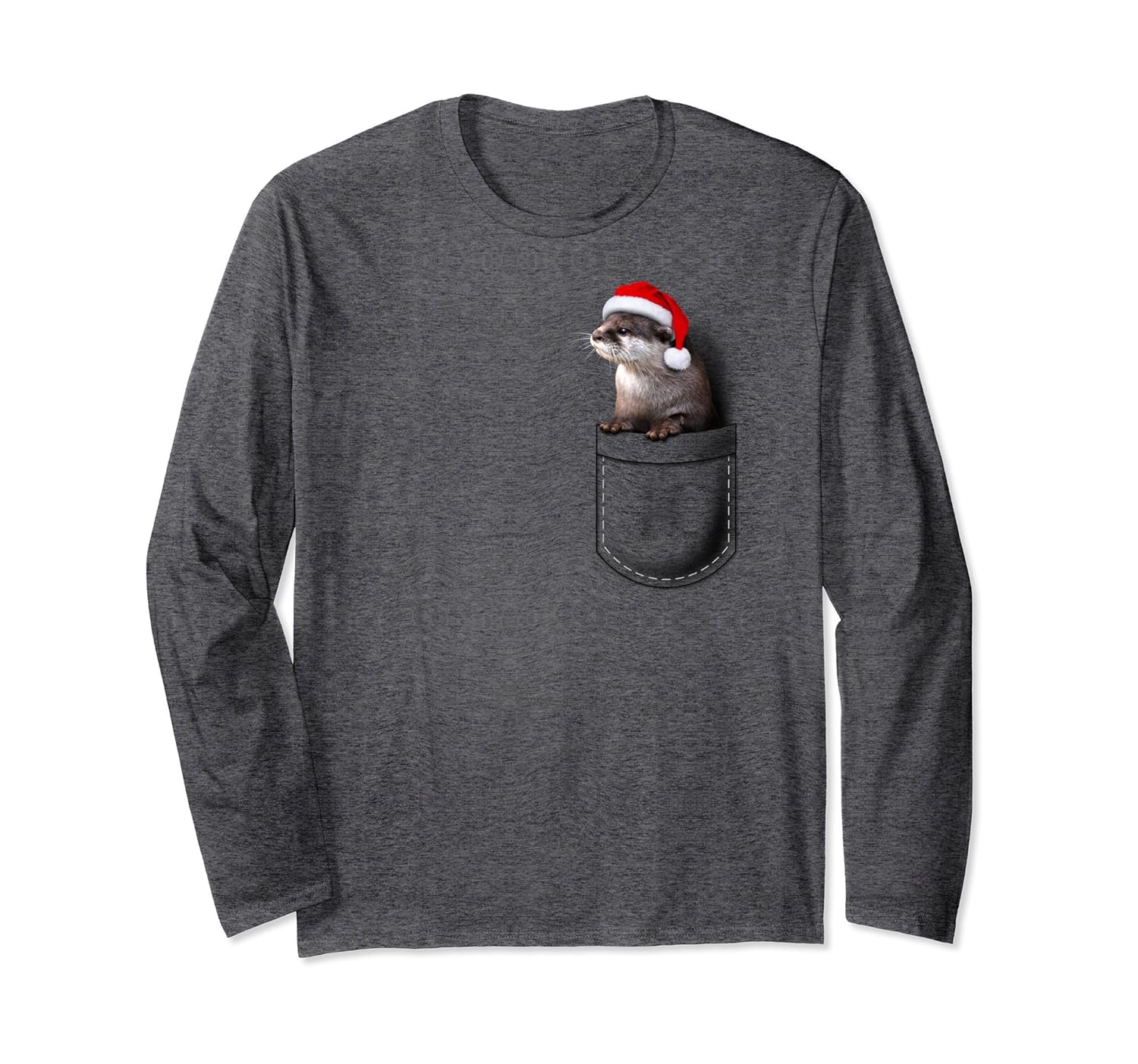Solid colors: 100% Cotton; Heather Grey: 90% Cotton, 10% Polyester; All Other Heathers: 50% Cotton, 50% Polyester; Imported; Machine wash cold with like colors, dry low heat; Sea Otter Peeking from pocket. cute nerd otter sweatshirt, perfect gift for otter lover and otter fans, adorable otter Tshirt for men women and kids. This otter looks so happy and cute! everyone will love him. Best Otter lover Shirt for women men and kids.; Cute Happy Otter wearing a Christmas Hat. Perfect longsleeve for Christmas. Otter Xmas long sleeve for Otter Fans! Must have Christmas Otter hoodie for Otter Lover. Merry Christmas from this Otter to Go! Funny Christmas sweat Shirt makes everyone laugh.; Lightweight, Classic fit, Double-needle sleeve and bottom hem