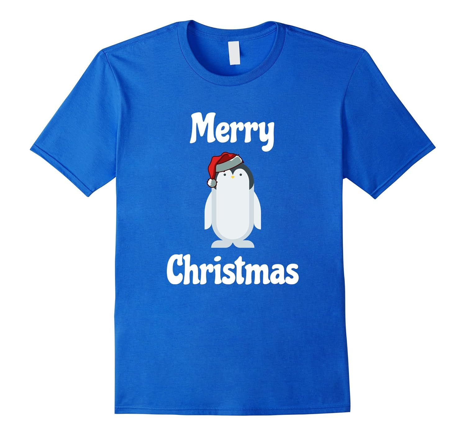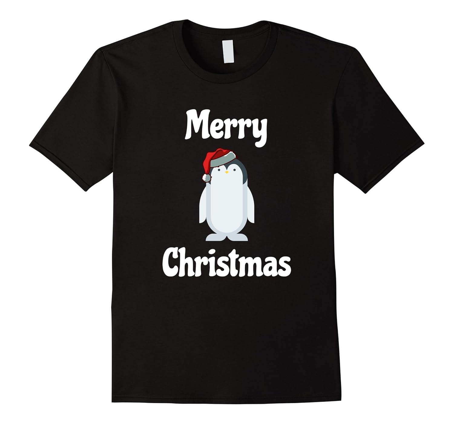 Solid colors: 100% Cotton; Heather Grey: 90% Cotton, 10% Polyester; All Other Heathers: 65% Cotton, 35% Polyester; Imported; Machine wash cold with like colors, dry low heat; Adorable Merry Christmas penguin in a Santa hat holiday graphic t-shirt. PJ matching top available in mens, womens, boys, and girls sizes. A great pajama Xmas morning stocking stuffer gift idea!; This holiday Christmas graphic t-shirt is designed and printed to be fitted. For a more loose fit, please order a size up.; Lightweight, Classic fit, Double-needle sleeve and bottom hem