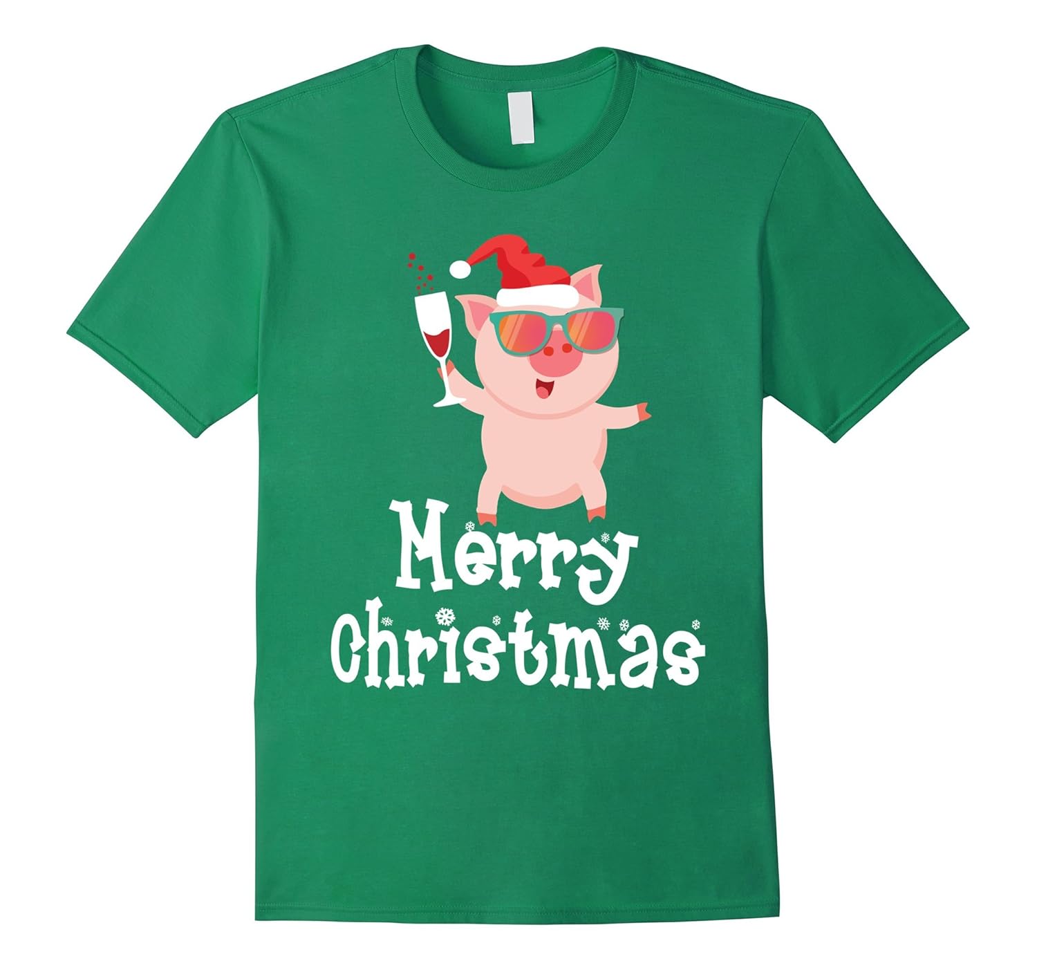 Cute Pig Merry Christmas Wine Party New Year T-Shirt gift-ANZ