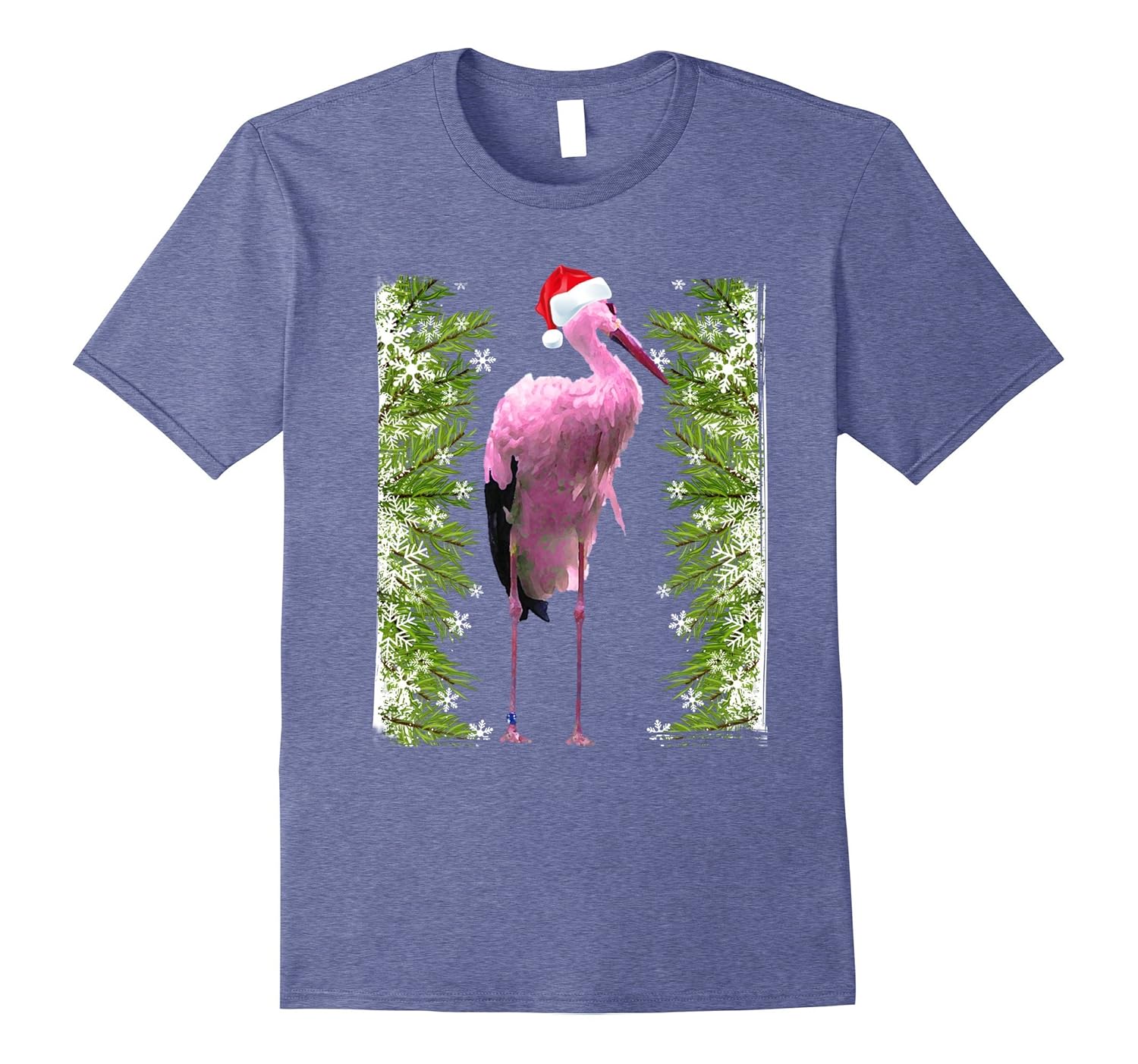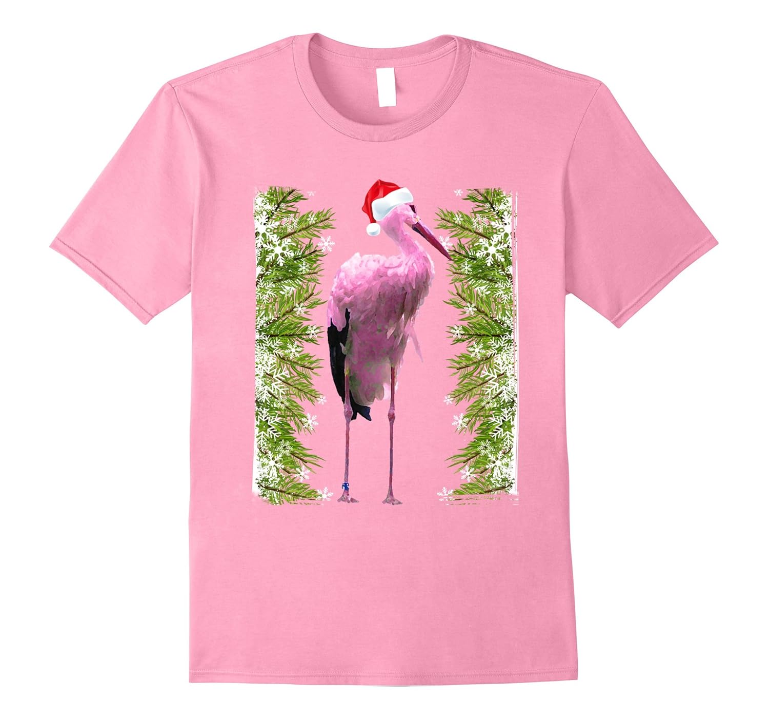 Cute Pink Flamingo Santa Hat T-Shirt Funny Christmas Gift-ANZ