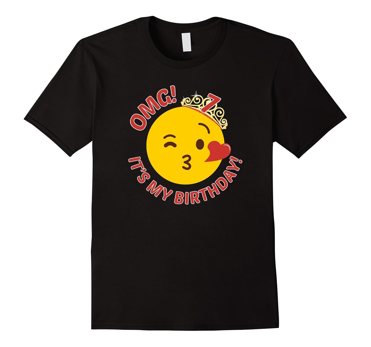 Solid colors: 100% Cotton; Heather Grey: 90% Cotton, 10% Polyester; All Other Heathers: 65% Cotton, 35% Polyester, Imported, Machine wash cold with like colors, dry low heat, OMG! Its my 7th Birthday Shirt w/ a kissy winking emoji blowing a kiss heart. A silly princess or queen tee shirt w/ tiara. A cute top for girls turning 7 years old. A clever, funny, sarcastic joke gift. Ironic birthday gift for guy or man who lost a bet. Fit: Slim (consider a larger size for a looser fit) Hilarious holiday Christmas gifts for men, women and kids, Boys or girls. Group family shirts for a Son, Husband, Daughter or wife. Silly novelty shirt for adults or children. Lightweight, Classic fit, Double-needle sleeve and bottom hem