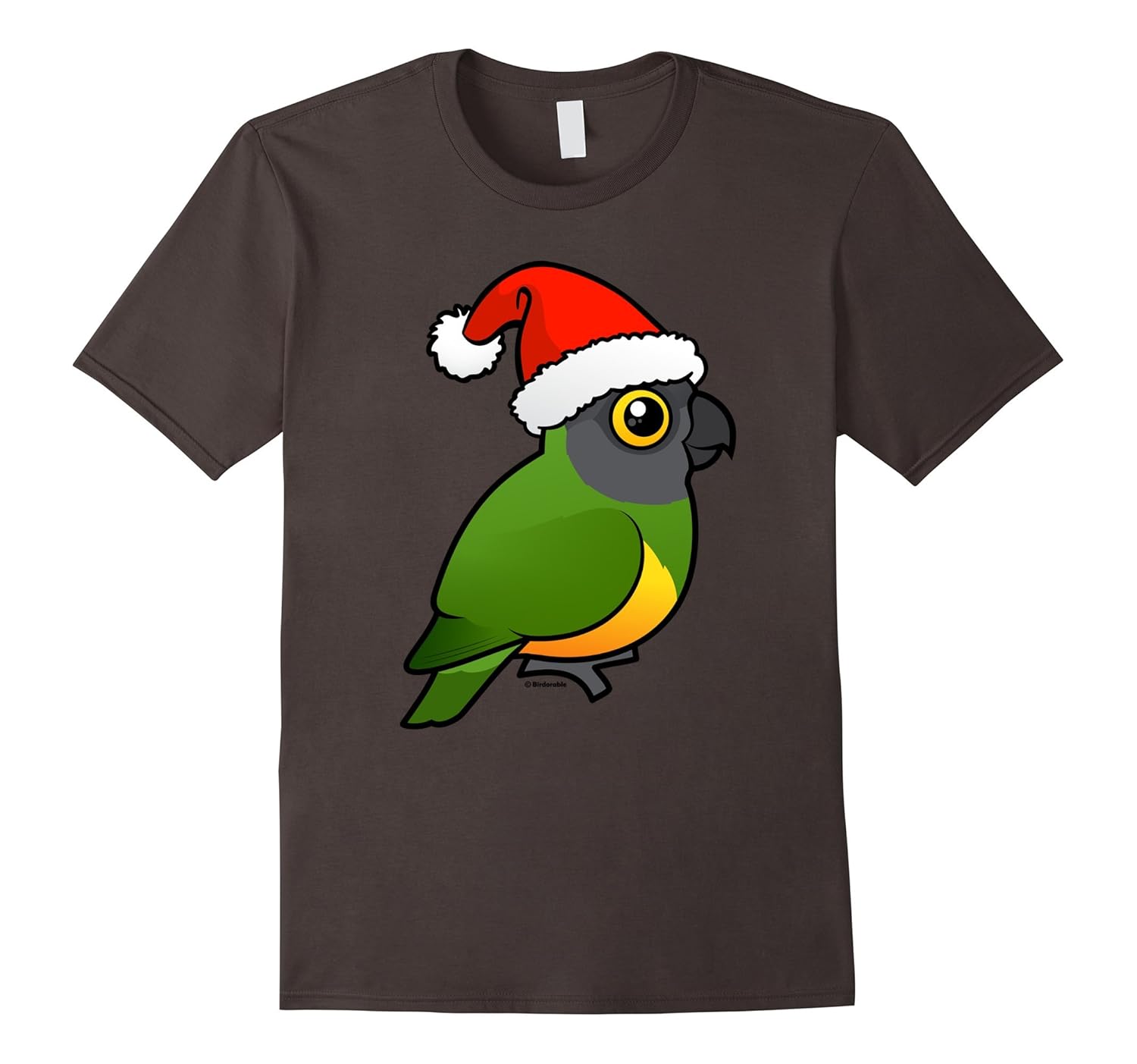 Solid colors: 100% Cotton; Heather Grey: 90% Cotton, 10% Polyester; All Other Heathers: 65% Cotton, 35% Polyester; Imported; Machine wash cold with like colors, dry low heat; Official Cute Bird Merchandise from Birdorable features our cartoon Senegal Parrot in a Santa Claus hat; Celebrate Christmas With An Adorable Senegal Parrot Holiday T-Shirt; Lightweight, Classic fit, Double-needle sleeve and bottom hem