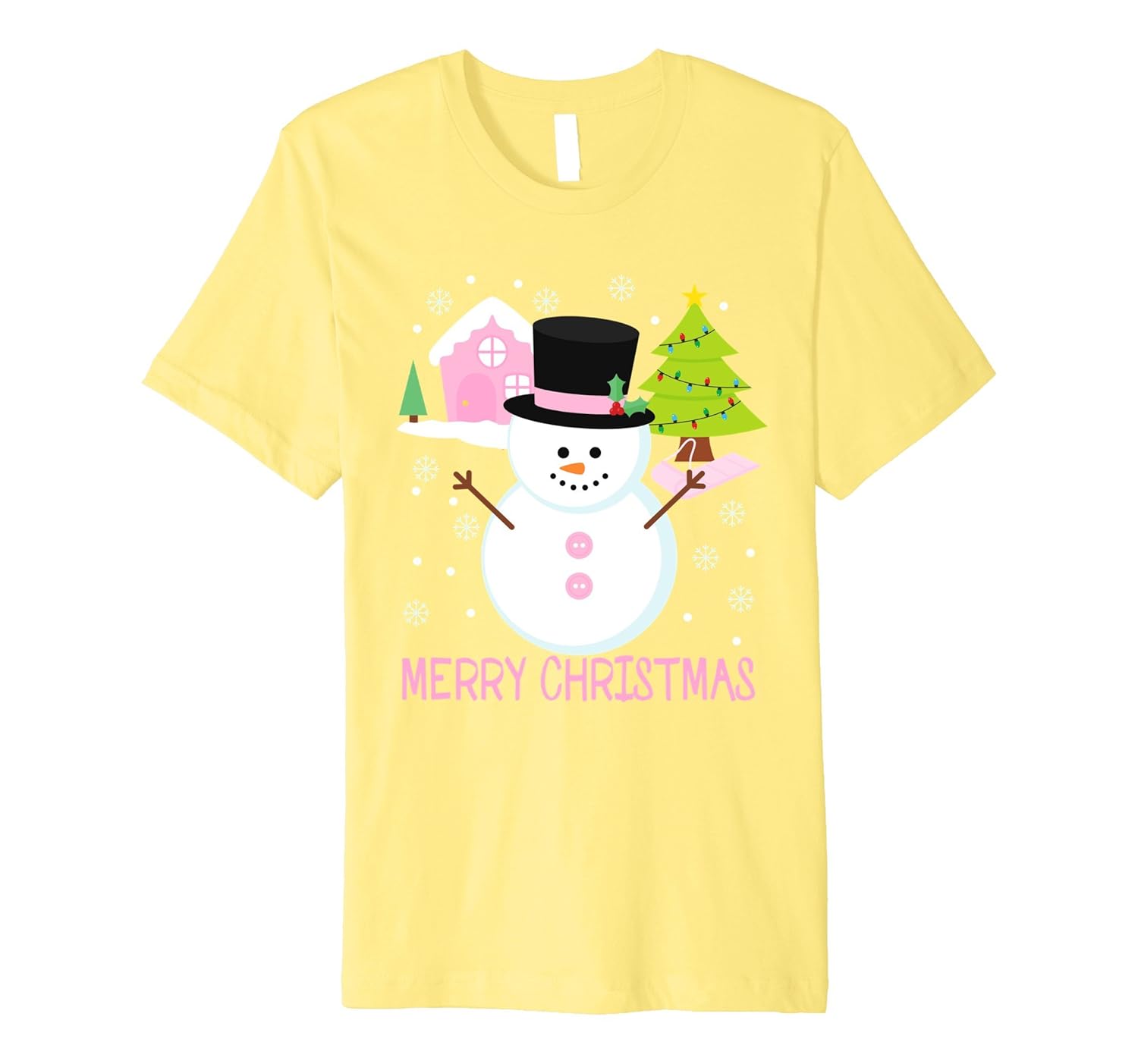 Solid colors: 100% Cotton; Heather Grey: 90% Cotton, 10% Polyester; All Other Heathers: 58% Cotton, 42% Polyester; Imported; Machine wash cold with like colors, dry low heat; Cute and funny holiday xmas tree, snowman, winter sled, and snow flakes featured saying Merry Christmas tshirt is for toddler, little girls of preschool, kindergarten, preschooler, pre-k, tk, tween, teenager, mom, granddaughter, niece, and any pink lover.; Fit: Slim (consider ordering a larger size for a looser fit); Great stocking stuffer item. Gift idea along with pajamas, ornament, book, scarf, hat, toy make up for Christmas morning, princess theme party, Thanksgiving, winter camp, birthday, family reunion, New Years Day.; This premium t-shirt is made of lightweight fine jersey fabric