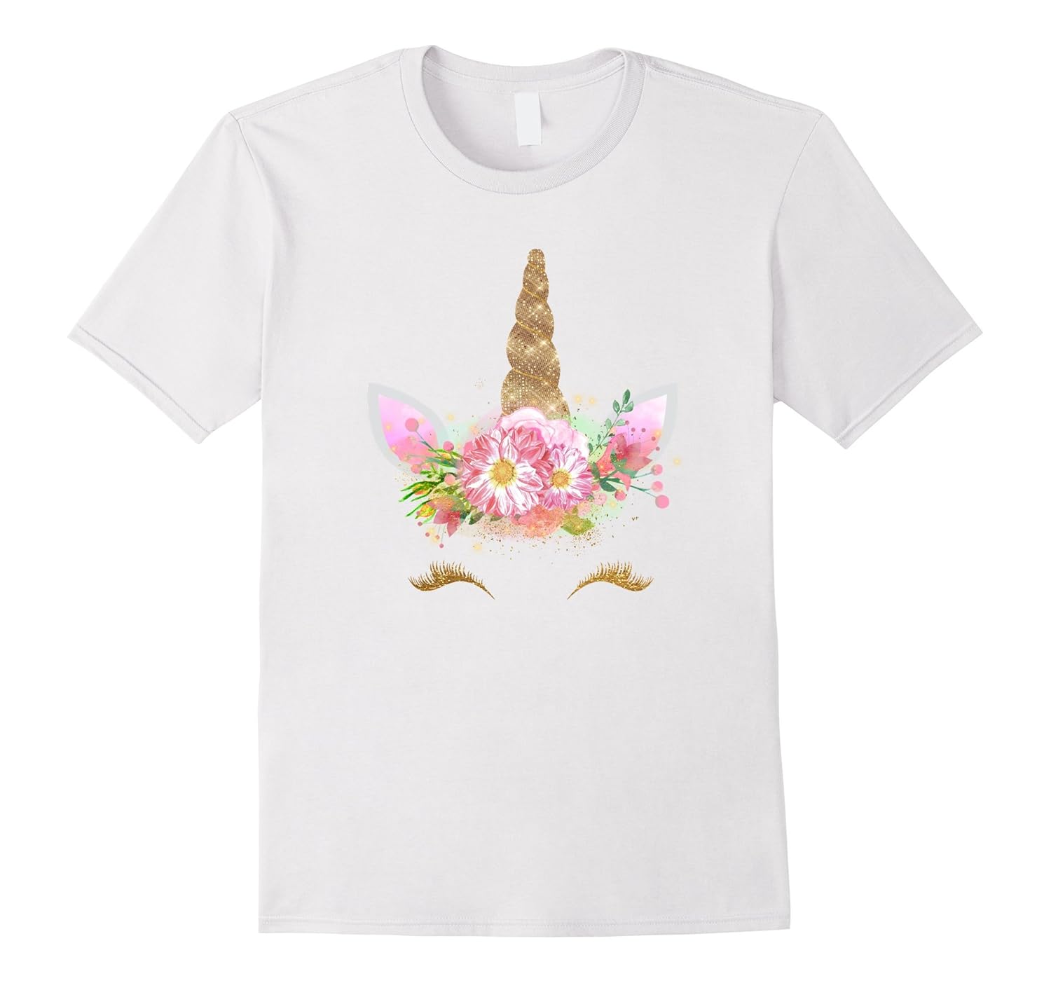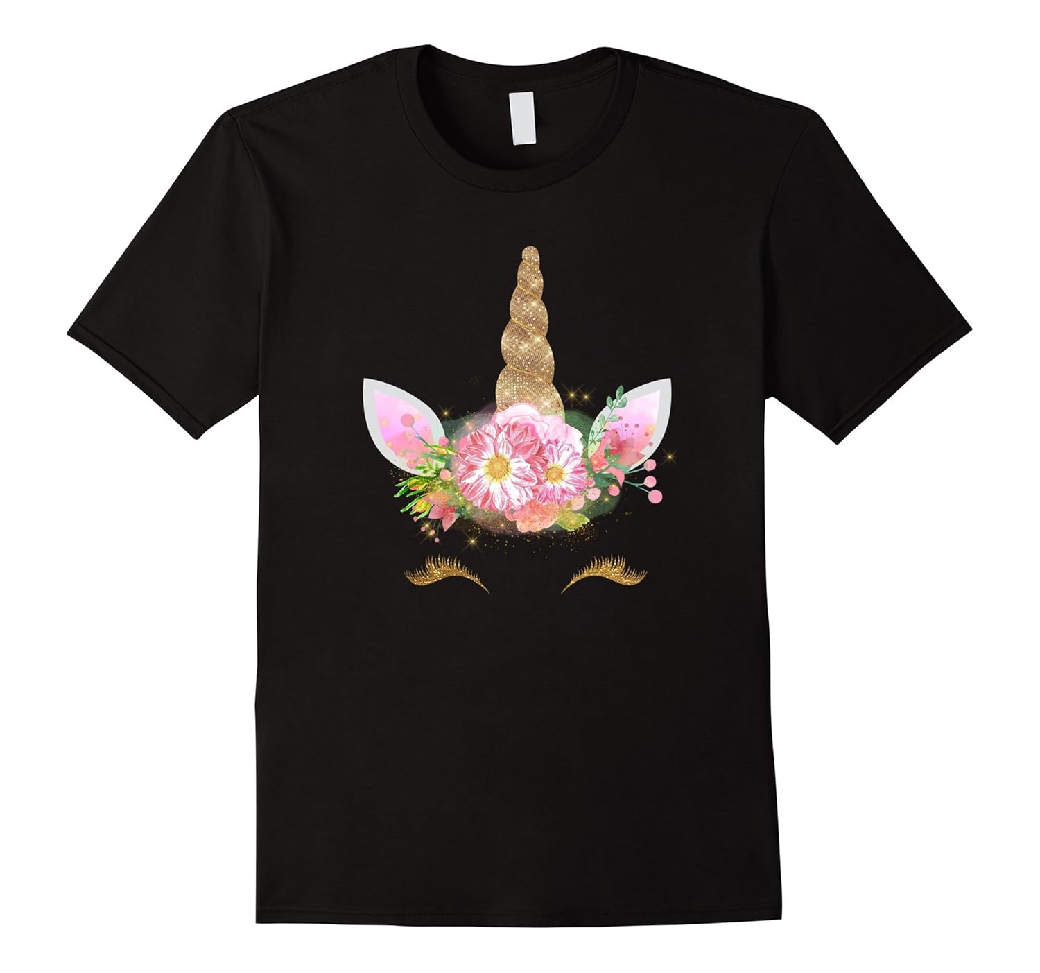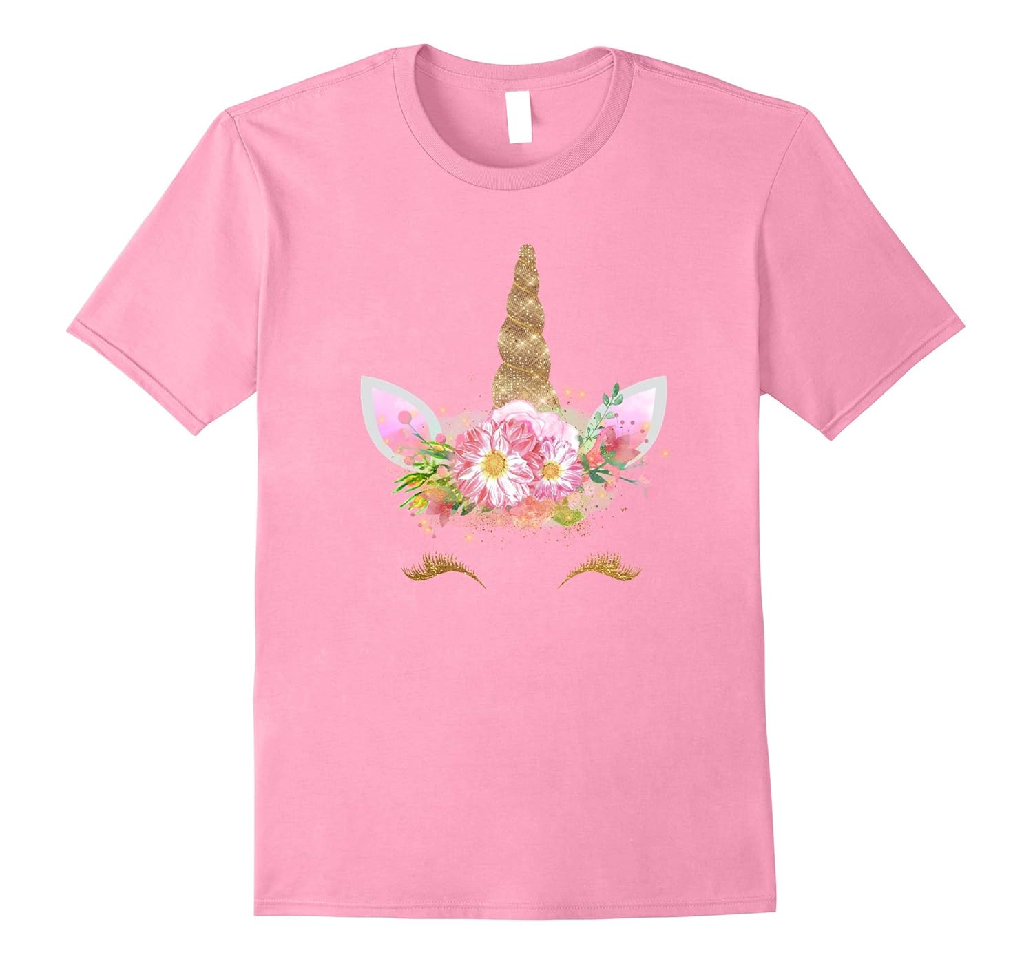 Solid colors: 100% Cotton; Heather Grey: 90% Cotton, 10% Polyester; All Other Heathers: 65% Cotton, 35% Polyester, Imported, Machine wash cold with like colors, dry low heat, Super cute gold sparkle gold unicorn horn with pink flower crown t shirt perfect for kids, boy or girl, to wear to school, party, the office, or as you Halloween costume! Way cooler than a dabbing unicorn that dabs!, Original graphic design available only here! Makes a great gift for birthday, anniversary, Christmas, Mother”s Day, Father”s Day or any holiday! Wear under you unicorn onsie!, Lightweight, Classic fit, Double-needle sleeve and bottom hem
