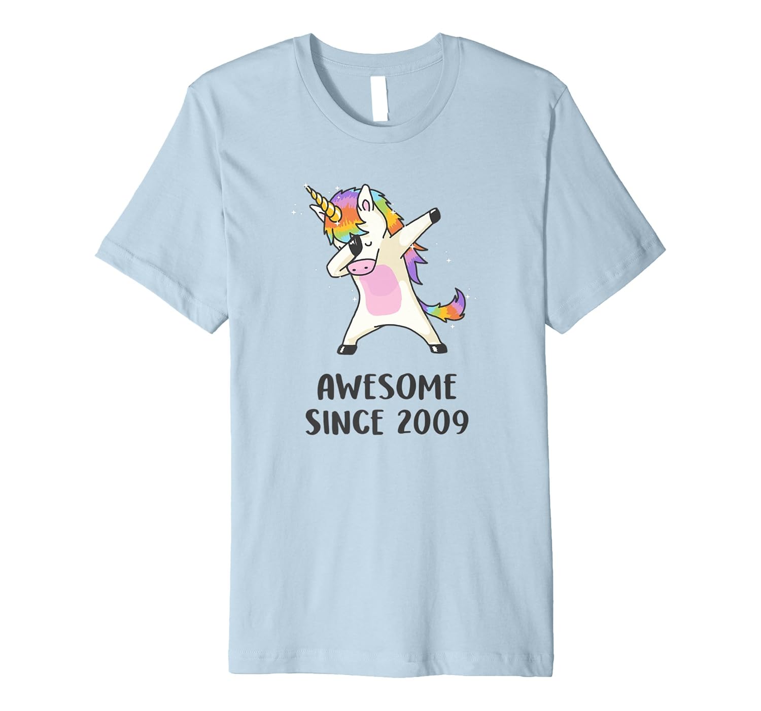 Solid colors: 100% Cotton; Heather Grey: 90% Cotton, 10% Polyester; All Other Heathers: 58% Cotton, 42% Polyester; Imported; Machine wash cold with like colors, dry low heat; Awesome Since 2009: 9th Birthday TShirt! Unicorns are born in 2009 Birthday Gift tshirt. Cute Dabbing Unicorn Shirt Hip Hop Dab dance pose! Unicorn gifts for unicorn lovers. Dabbing Unicorn 9th anniversary shirt: Made in 09, 09 years of being awesome!; This girl was Made in 2009 tee, 9 years old gift idea, 9th anniversary gifts, 9th birthday girl, 9th birthday shirts for girls, teens clothing. Magic Unicorn Dab Funny present for nine year olds. Birthday gifts for daughter Andamp; mother. Dabbing Unicorn Kids!; This premium t-shirt is made of lightweight fine jersey fabric; Fit: Slim (consider ordering a larger size for a looser fit)
