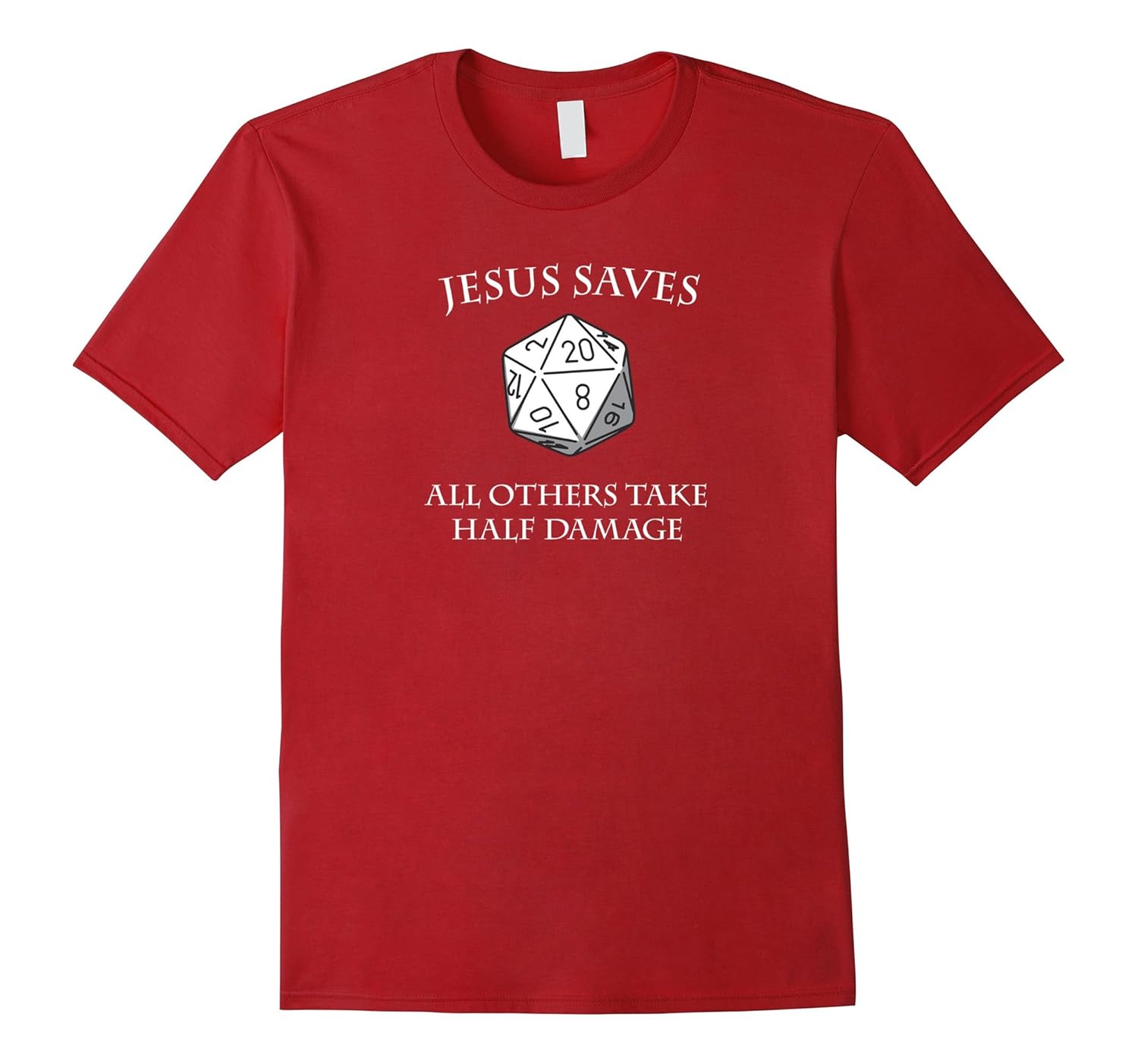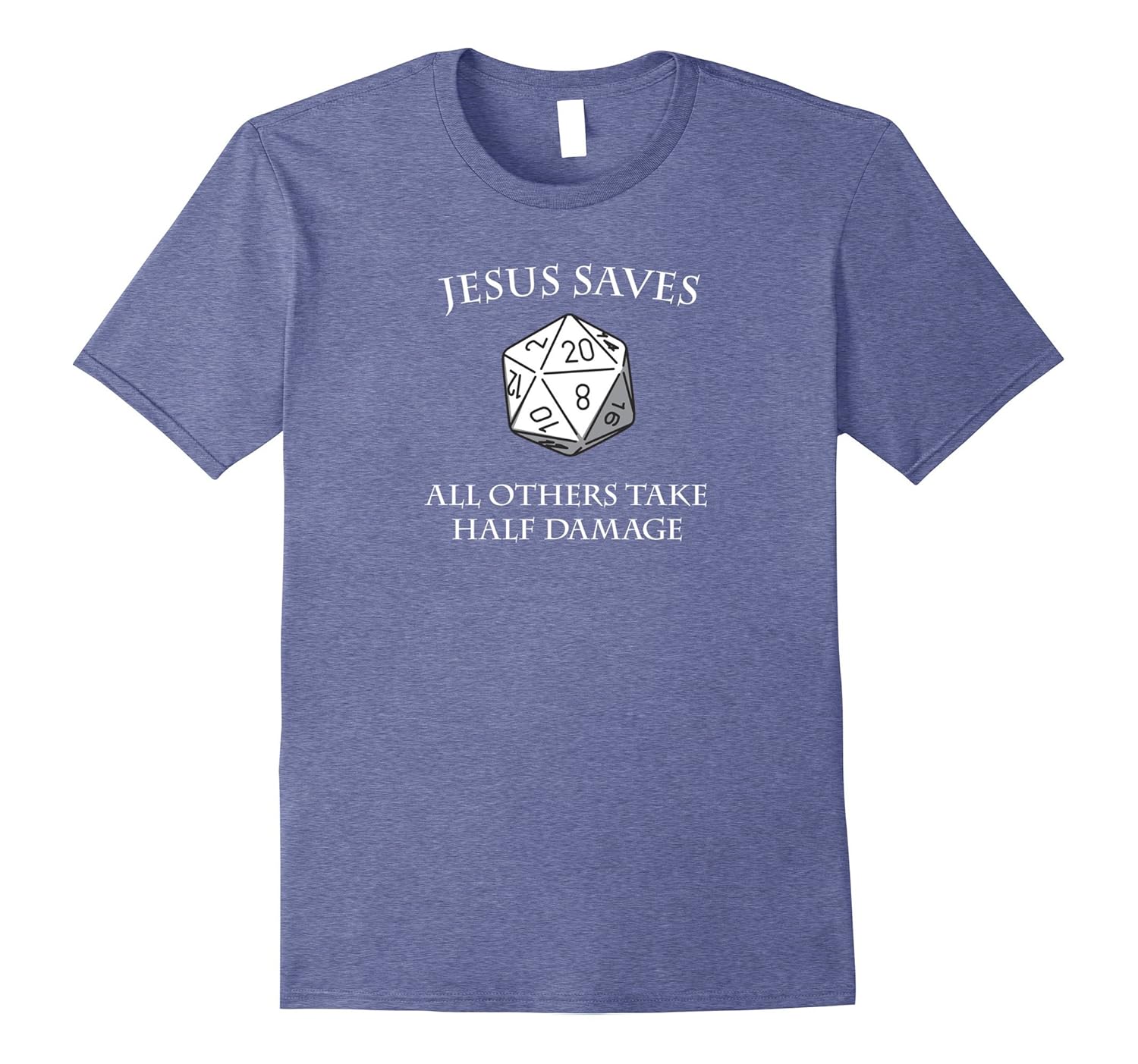Solid colors: 100% Cotton; Heather Grey: 90% Cotton, 10% Polyester; All Other Heathers: 65% Cotton, 35% Polyester, Imported, Machine wash cold with like colors, dry low heat, Jesus Saves – All Others Take Half Damage Shirt. The Lord always makes his savings throw. Roleplaying Game T-Shirt If you”re an explorer of dungeons and a slayer of goblins, ghosts, and dragons don”t pass this d20 shirt up! Women”s and Kids Shirt Sizes Run Small Consider Ordering A Size Up, Lightweight, Classic fit, Double-needle sleeve and bottom hem