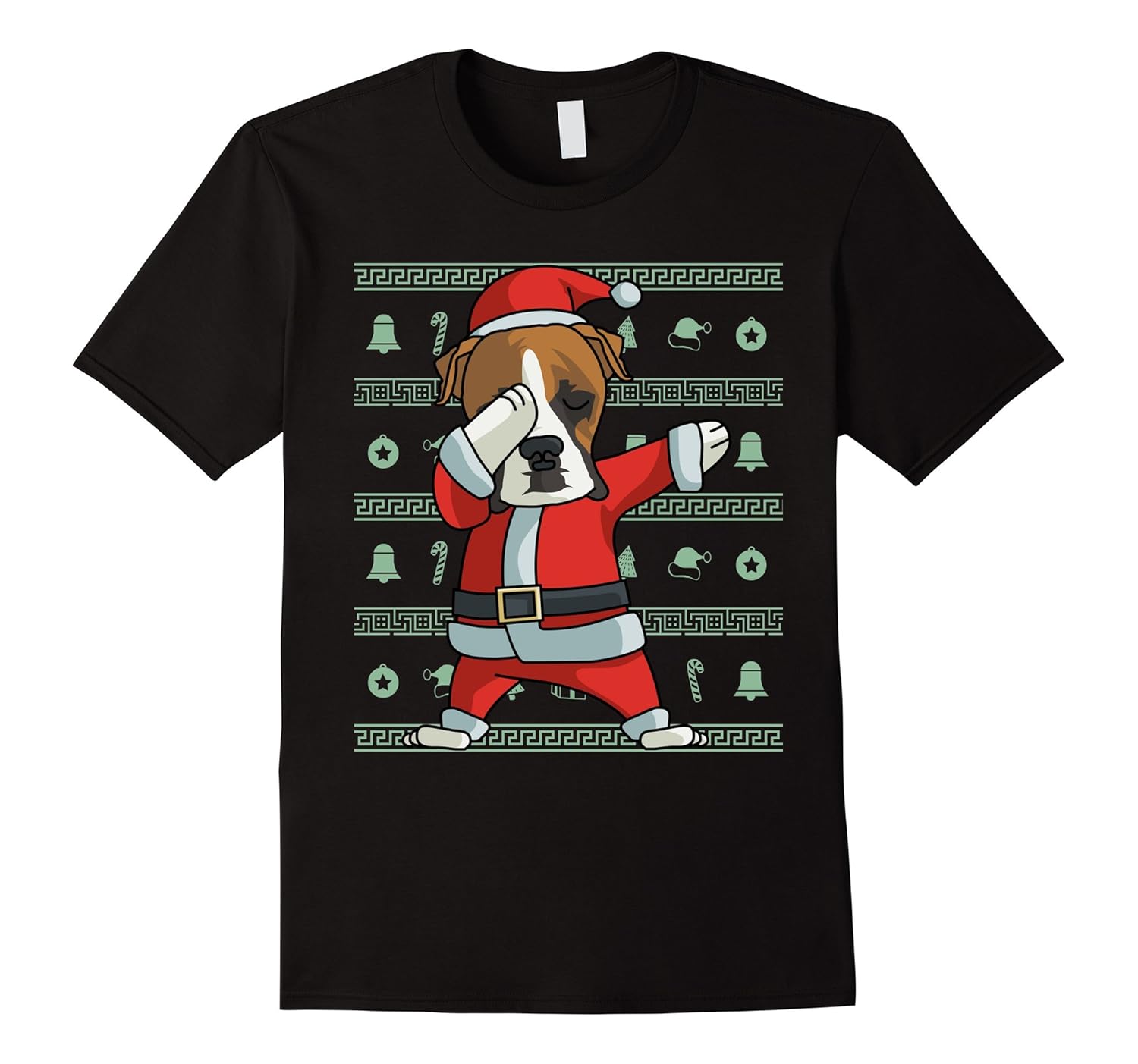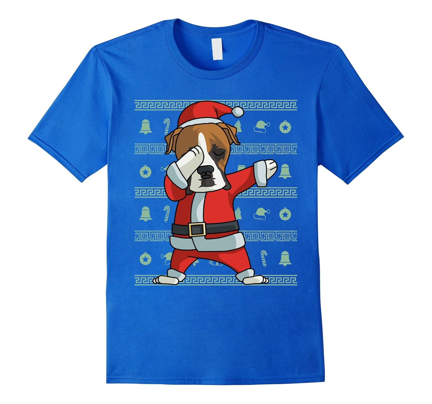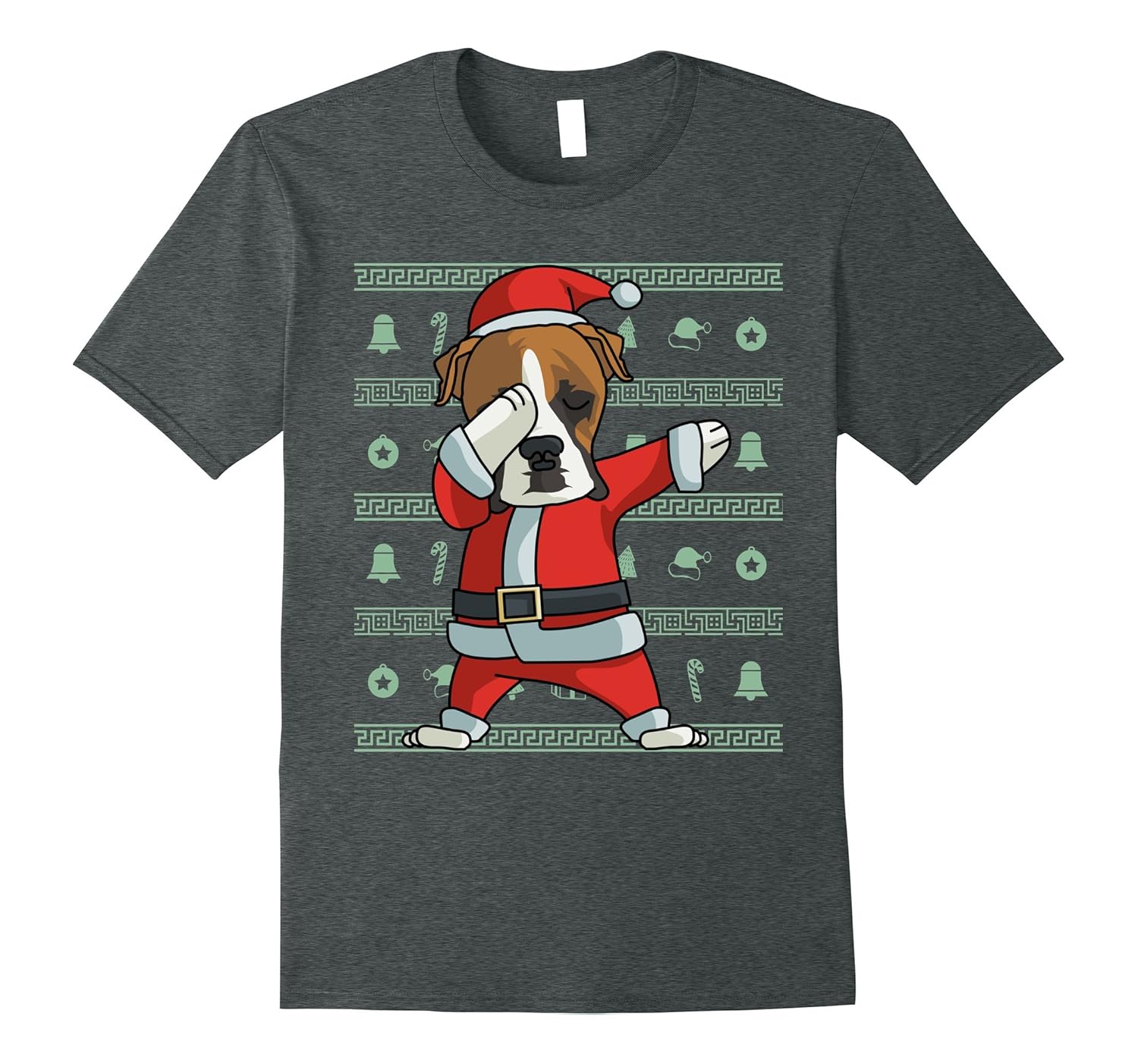 Solid colors: 100% Cotton; Heather Grey: 90% Cotton, 10% Polyester; All Other Heathers: 65% Cotton, 35% Polyester, Imported, Machine wash cold with like colors, dry low heat, Perfect Holiday Gift for people who are in your nice list this Christmas and loves Dogs. Santa Boxer Graphic Tee Shirt a funny way to spread the season cheer and great wear at Xmas parties, Dabbing Chritmas imprints that looks great in five amazing color of your choices and also available different sizes for men women, him her mom dad, ladies girls boys teens, grandma and grandpa. Lightweight, Classic fit, Double-needle sleeve and bottom hem