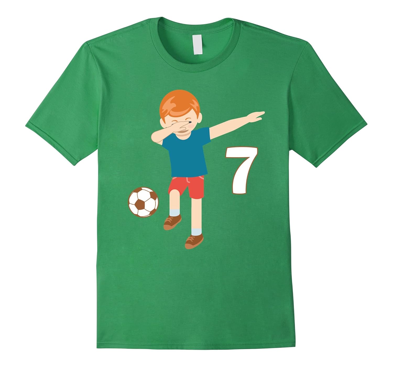 Solid colors: 100% Cotton; Heather Grey: 90% Cotton, 10% Polyester; All Other Heathers: 65% Cotton, 35% Polyester, Imported, Machine wash cold with like colors, dry low heat, Super cute soccer shirt for boys love dabbing dance and turning 7 years old so going to celebrate their 7th birthday soon. Also this 7 can be a best favourite number for this boy soccer player or just lucky number for him what helps him to win. Great present for Boys Soccer Shirt Funny image of a boy dabbing make this tee awesome and great as a birthday gift for son from mother and father also as from grandmother and grandfather who look for Cool Boys Soccer T Shirts for Christmas and b-day. Lightweight, Classic fit, Double-needle sleeve and bottom hem