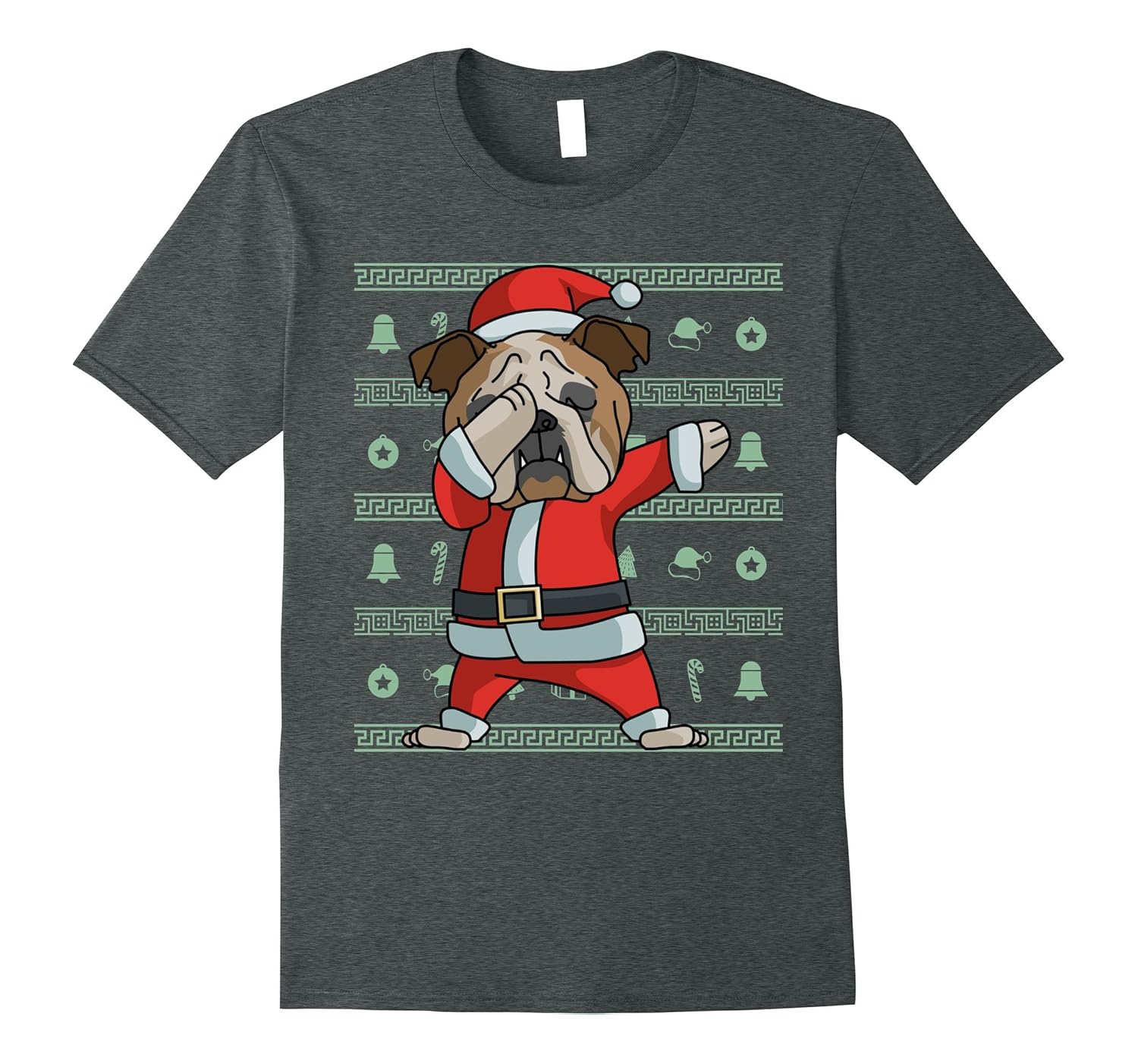 Solid colors: 100% Cotton; Heather Grey: 90% Cotton, 10% Polyester; All Other Heathers: 65% Cotton, 35% Polyester, Imported, Machine wash cold with like colors, dry low heat, Perfect Holiday Gift for people who are in your nice list this Christmas and loves Dogs. Santa English Bulldog Graphic Tee Shirt a funny way to spread the season cheer and great wear at Xmas parties, Dabbing Chritmas imprints that looks great in five amazing color of your choices and also available different sizes for men women, him her mom dad, ladies girls boys teens, grandma and grandpa. Lightweight, Classic fit, Double-needle sleeve and bottom hem