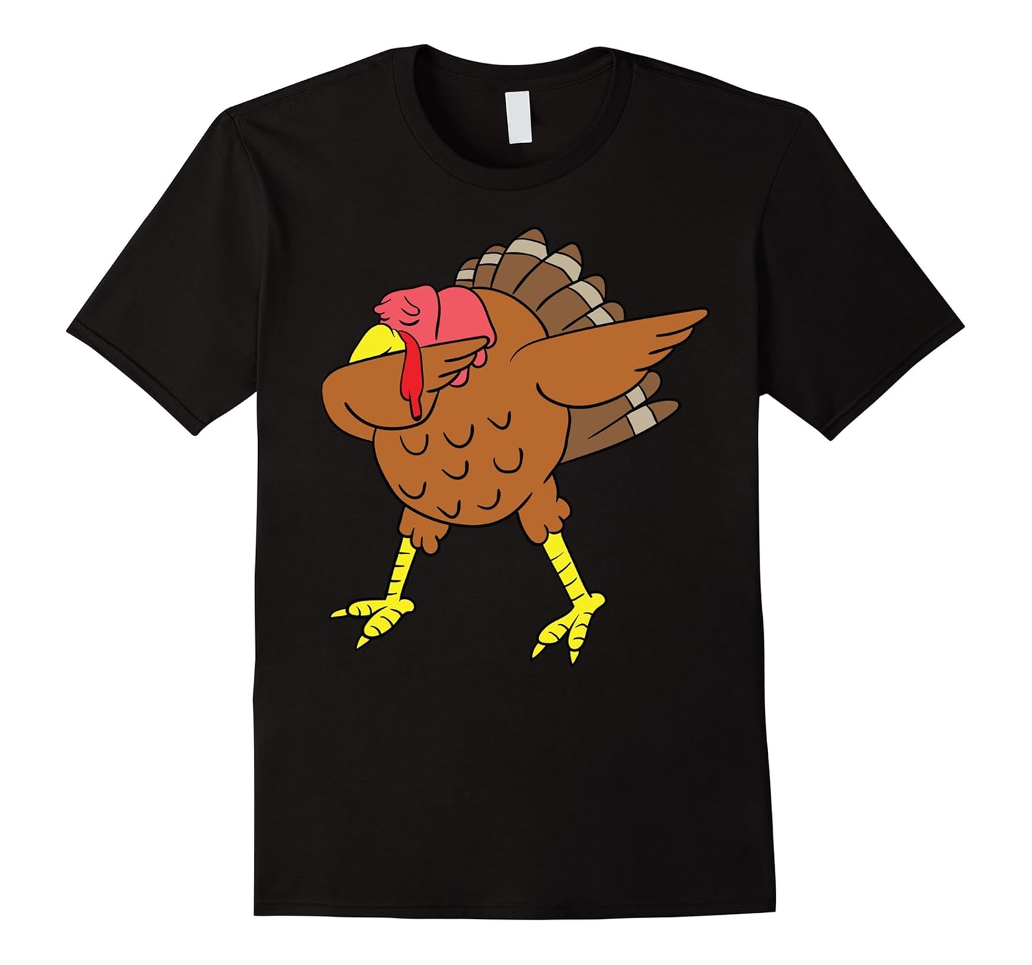 Solid colors: 100% Cotton; Heather Grey: 90% Cotton, 10% Polyester; All Other Heathers: 65% Cotton, 35% Polyester, Imported, Machine wash cold with like colors, dry low heat, Get your table decorations, silver wear, napkins and your appetite ready for this Dabbing Turkey! Get ready to carve and eat the turkey and enjoy a slice of that tasty pumpkin pie while wearing this trendy Thanksgiving tee! Great gift for your host!, Get ready to celebrate Thanksgiving! If turkey is on the menu, this will be the perfect matching family Thanksgiving dinner shirt for friends and family! Perfect gift idea shirt for Turkey Day and Thanksgiving Day!, Lightweight, Classic fit, Double-needle sleeve and bottom hem