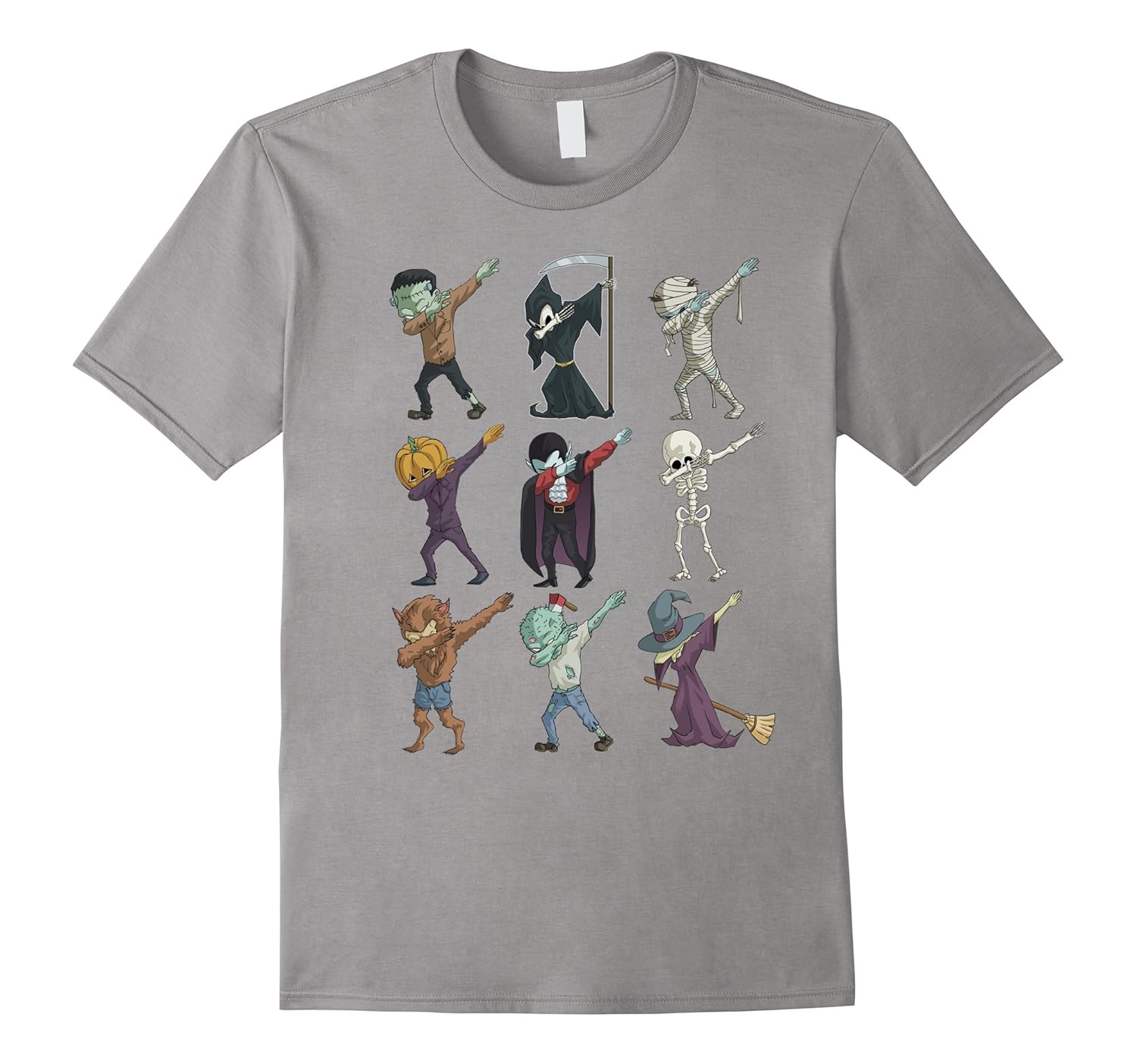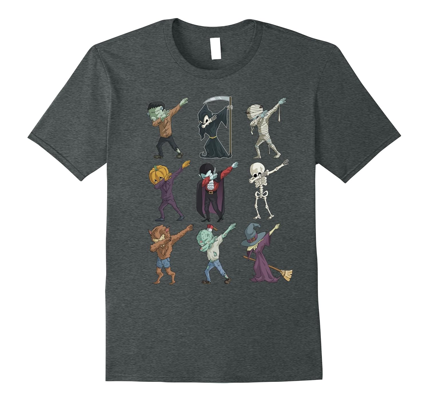 Solid colors: 100% Cotton; Heather Grey: 90% Cotton, 10% Polyester; All Other Heathers: 65% Cotton, 35% Polyester, Imported, Machine wash cold with like colors, dry low heat, Perfect Gift for all who celebrate Halloween, also great costume party T-Shirt. Frankenstein, Mummy, Vampire, Pumpkin, Witch and Werewolf Dabbing Graphic Tee Shirt for Halloween and Thanksgiving, Original imprints that looks great in five amazing color of your choices and also available different sizes for men women, him her mom dad, ladies girls boys teens, grandma and grandpa. Lightweight, Classic fit, Double-needle sleeve and bottom hem