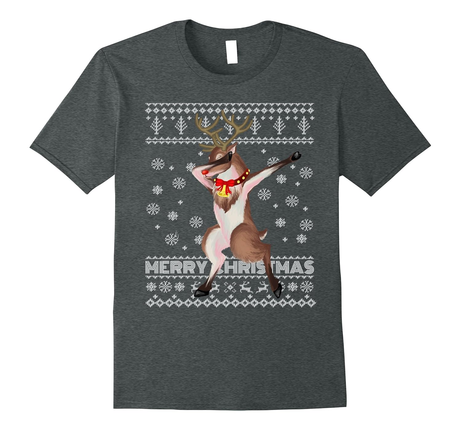 Solid colors: 100% Cotton; Heather Grey: 90% Cotton, 10% Polyester; All Other Heathers: 65% Cotton, 35% Polyester, Imported, Machine wash cold with like colors, dry low heat, Cute Funny reindeer dabbing tshirt, Christmas reindeer graphic tees, Reindeer dab drawing with xmas decorations. Lightweight, Classic fit, Double-needle sleeve and bottom hem